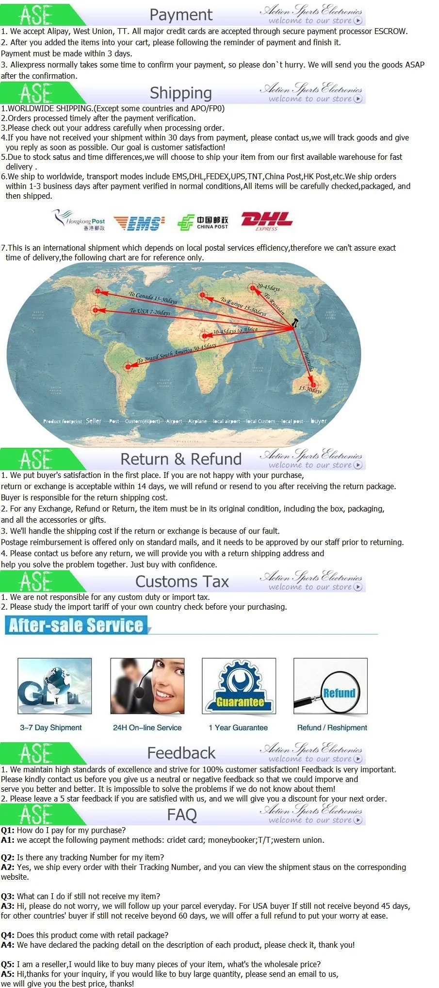 • If you did not receive the product within the guaranteed time( 45 days not including 2-5 day processing) you can request a refund or a reshipment.
