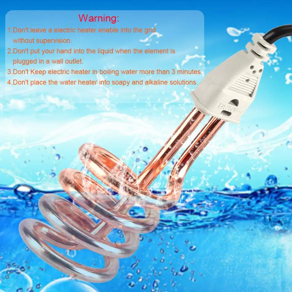 2500W 220V Portable Immersion Electric Heater Boiler Water Heating Element Travel Home Bathroom Use