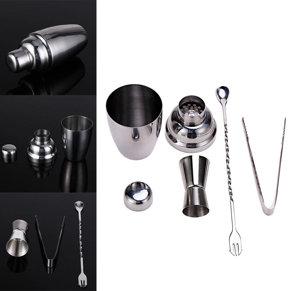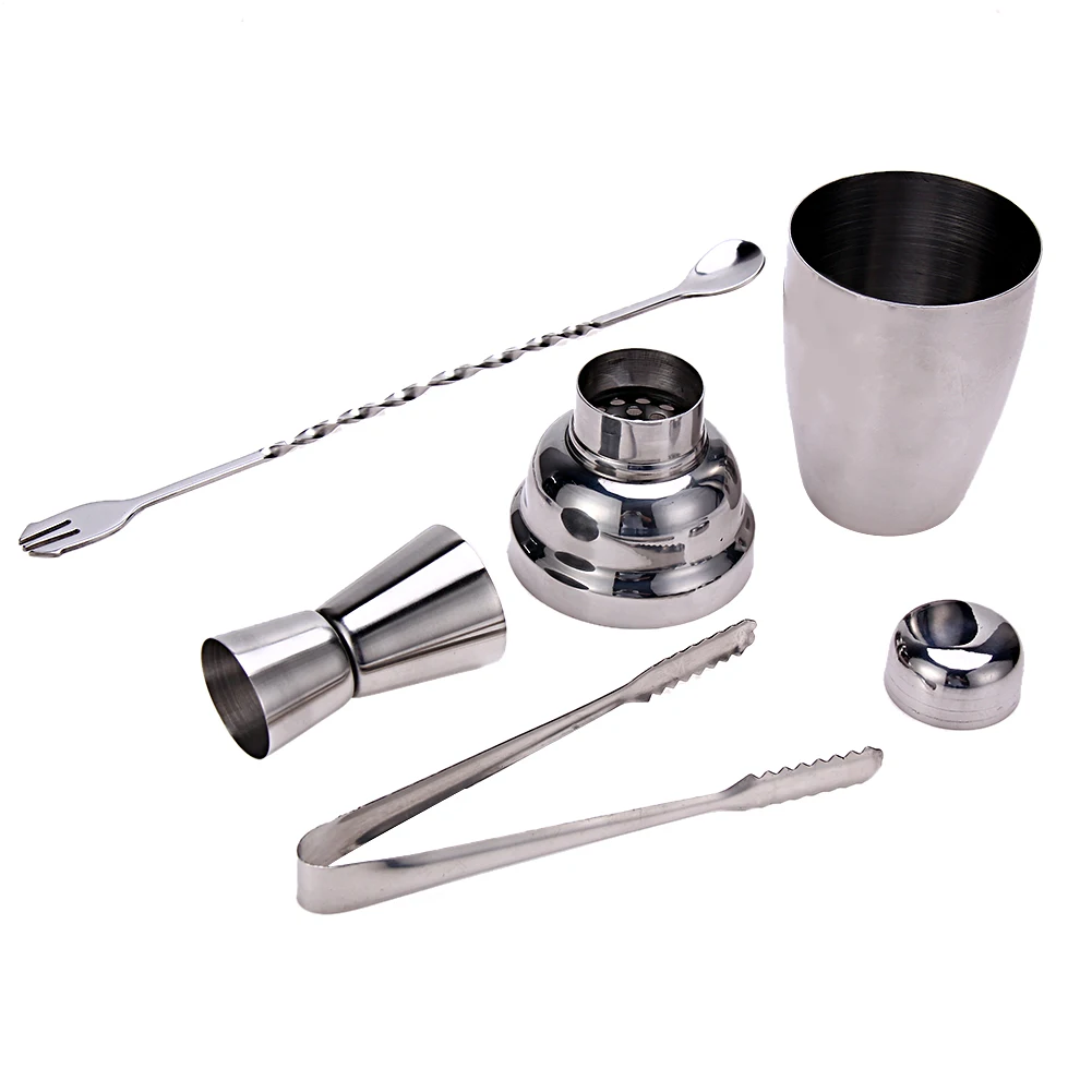 250ML Stainless Steel Cocktail Shaker + Jigger Mixing Spoon Muddler Wine Martini Boston Cocktail Mixer Party Bar Drinking Maker