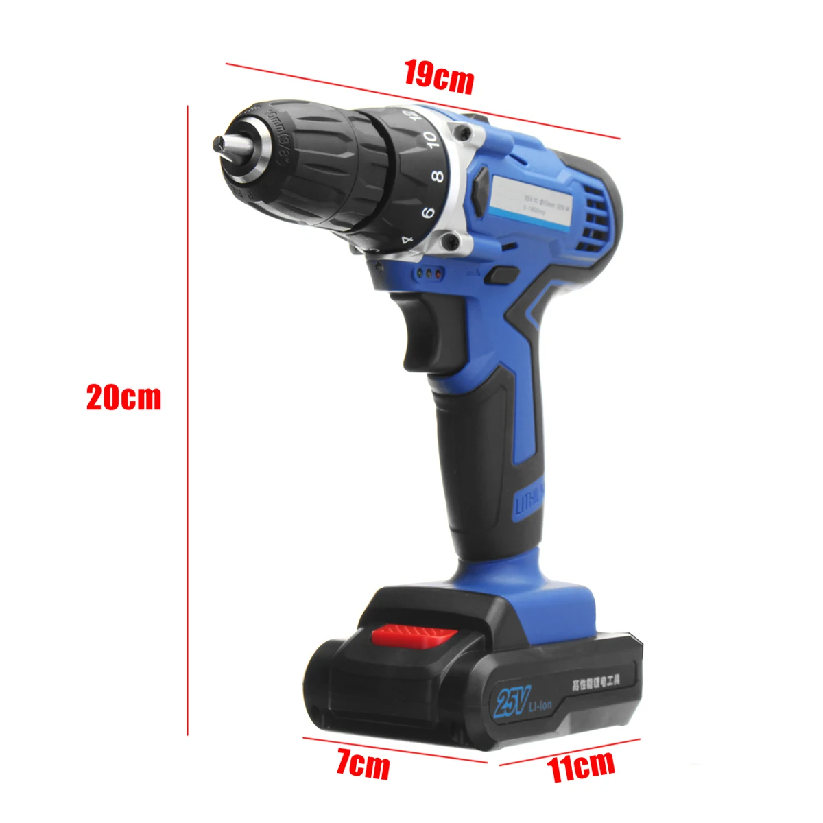 25V Lithium-Ion Battery Power Drill Driver Rechargeable Cordless Drill Electric Hammer Screwdriver Power Tools