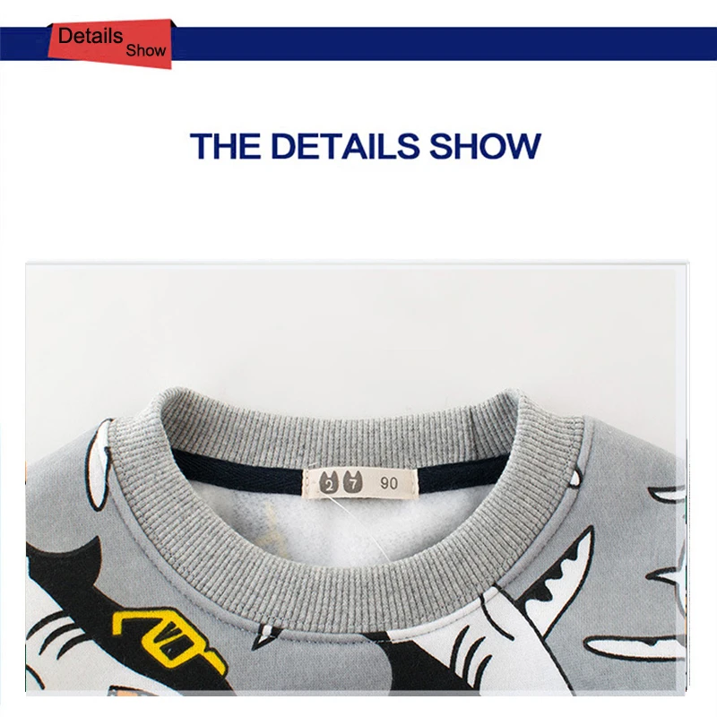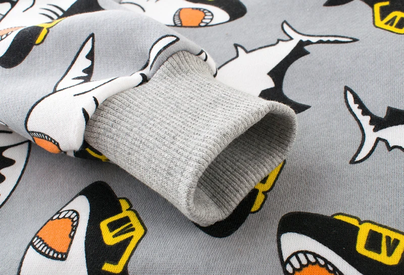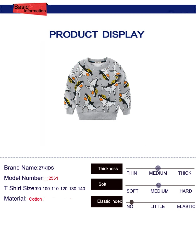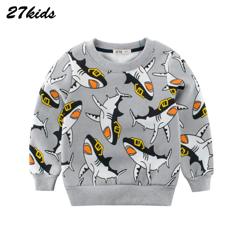 27kids 2-9Year Cartoon Shark Print Children’s Sweatshirt 6 Years Autumn Winter Warm Sweatshirt for Children sudadera boy