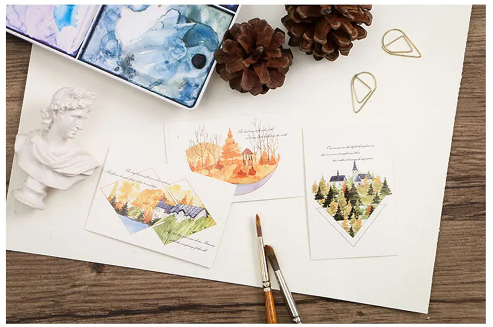 28 pcs/box Four seasons natural landscape beautiful village scenery lomo small cards message card postcard holiday universal