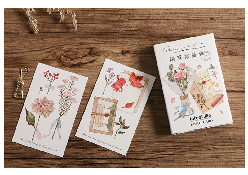 28pc/box Please write to me Beautiful bouquet flower creative lomo small cards message card holiday universal birthday gift card