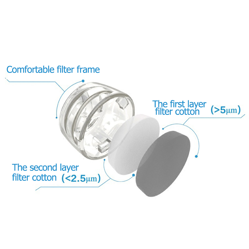 3. Put the the filter into the nasal cavity, adjust the best location through the nose breathing. Please ensure the correct wear to achieve the best protection and stealth effect.