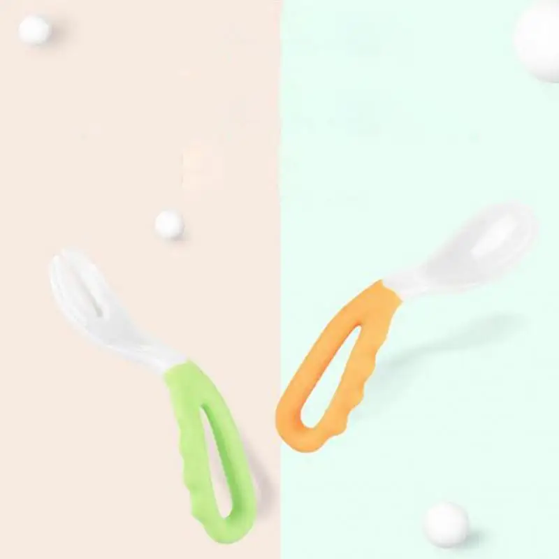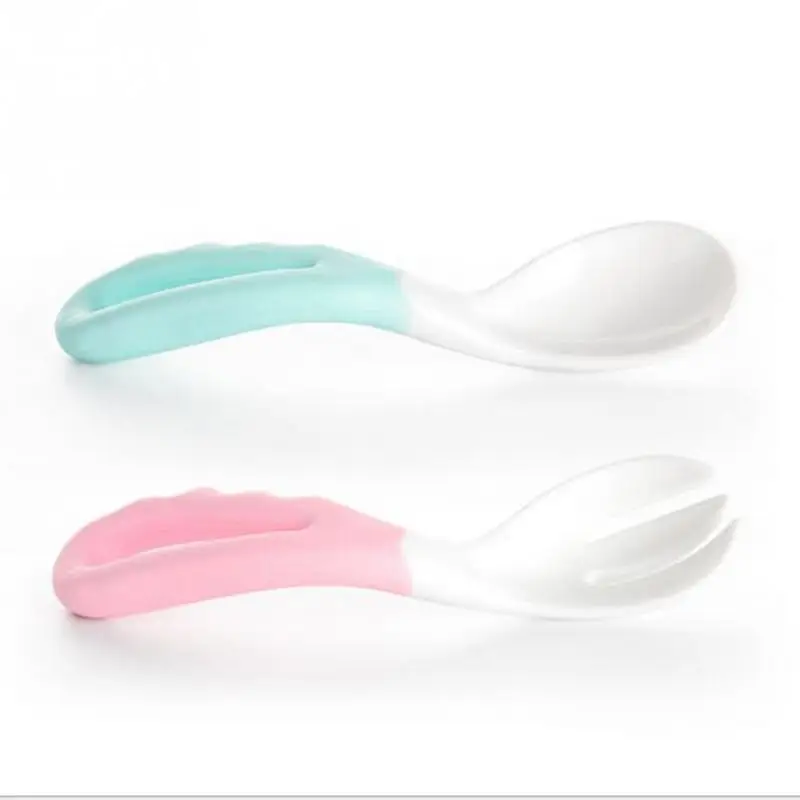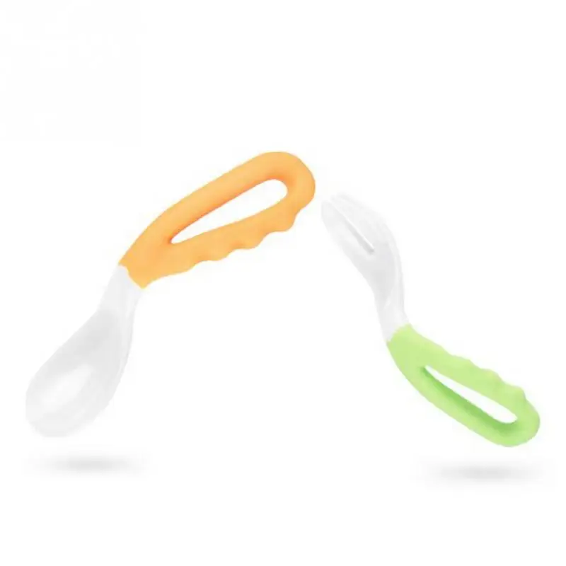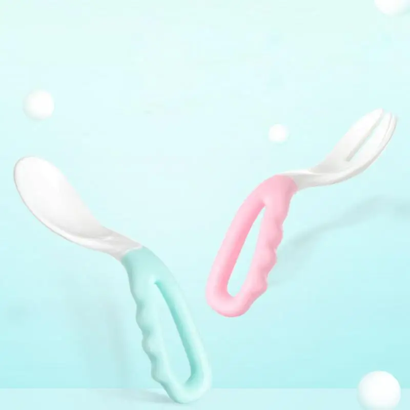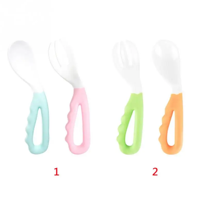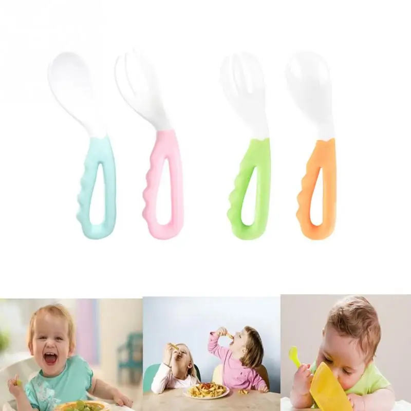 2pc/set Baby Dishes Stainless Steel Baby Spoon Fork Portable Curved Handle Baby Feeding Food Training Tableware Children Spoon