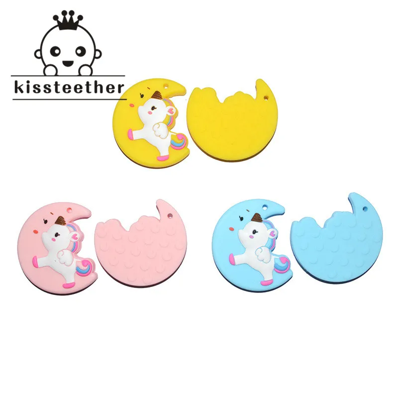 2pc Silicone Unicorn Moon BPA Free Silicone Teething Children’s Jewelry Molar Teeth Toy Nursing Necklace Pendant