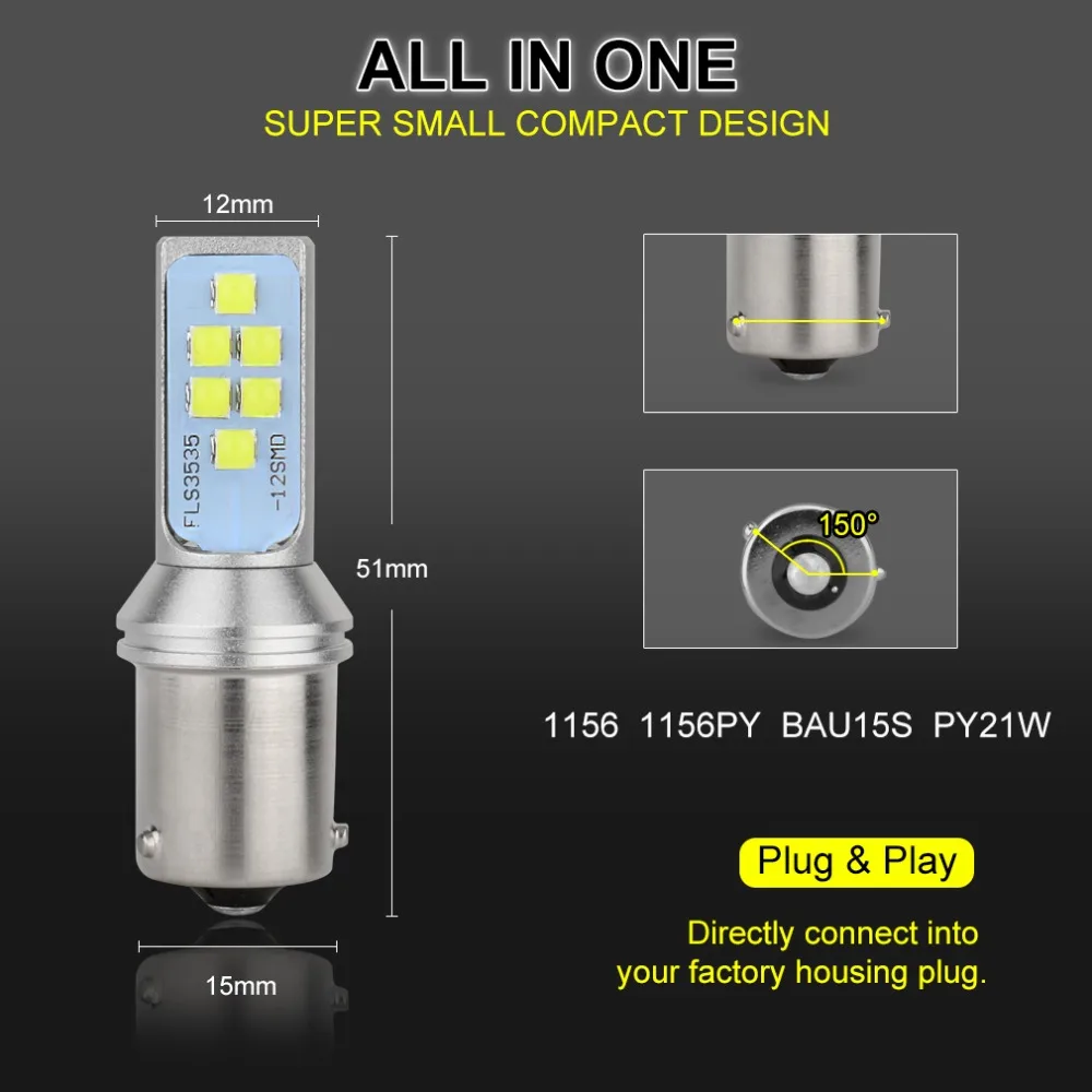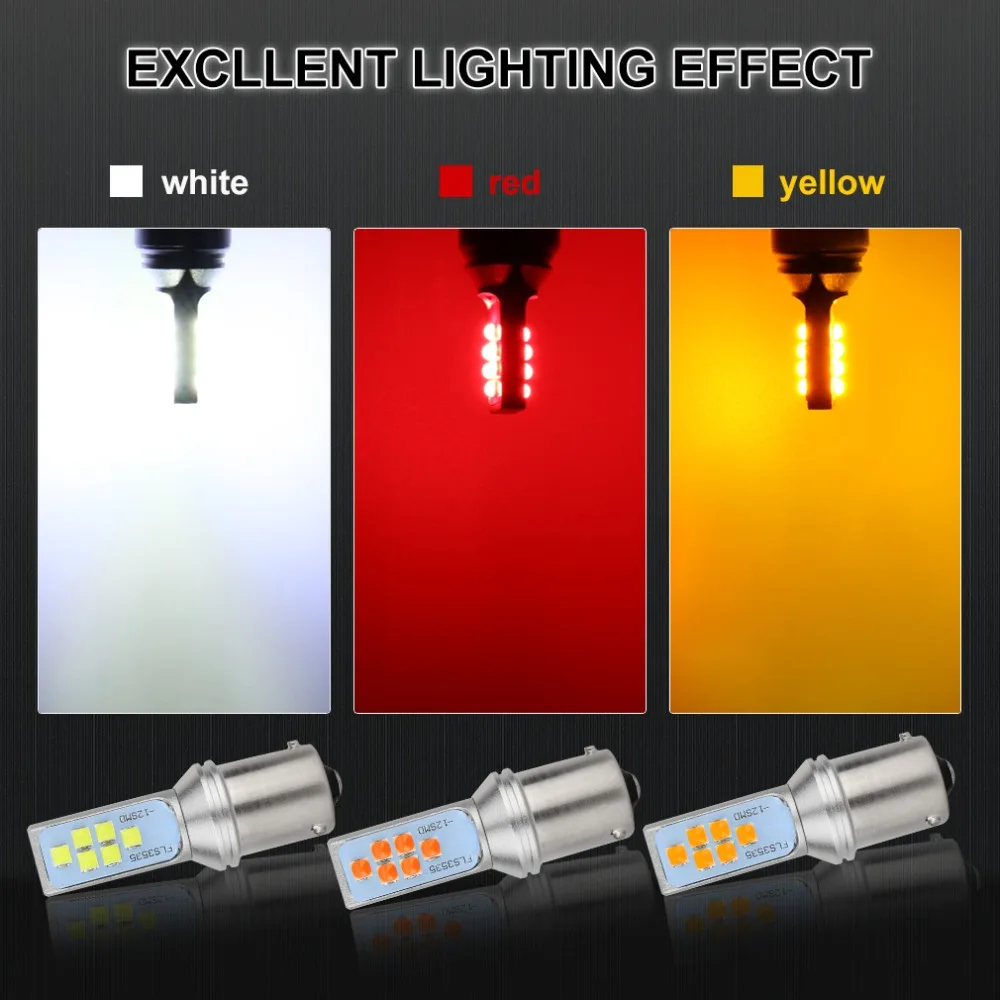 2Pcs 1156 BAU15S PY21W LED Bulb 12 3535SMD Car Turn Signal Lamp Brake Tail Light Auto Bulb 12V 6000K White Yellow Amber Red