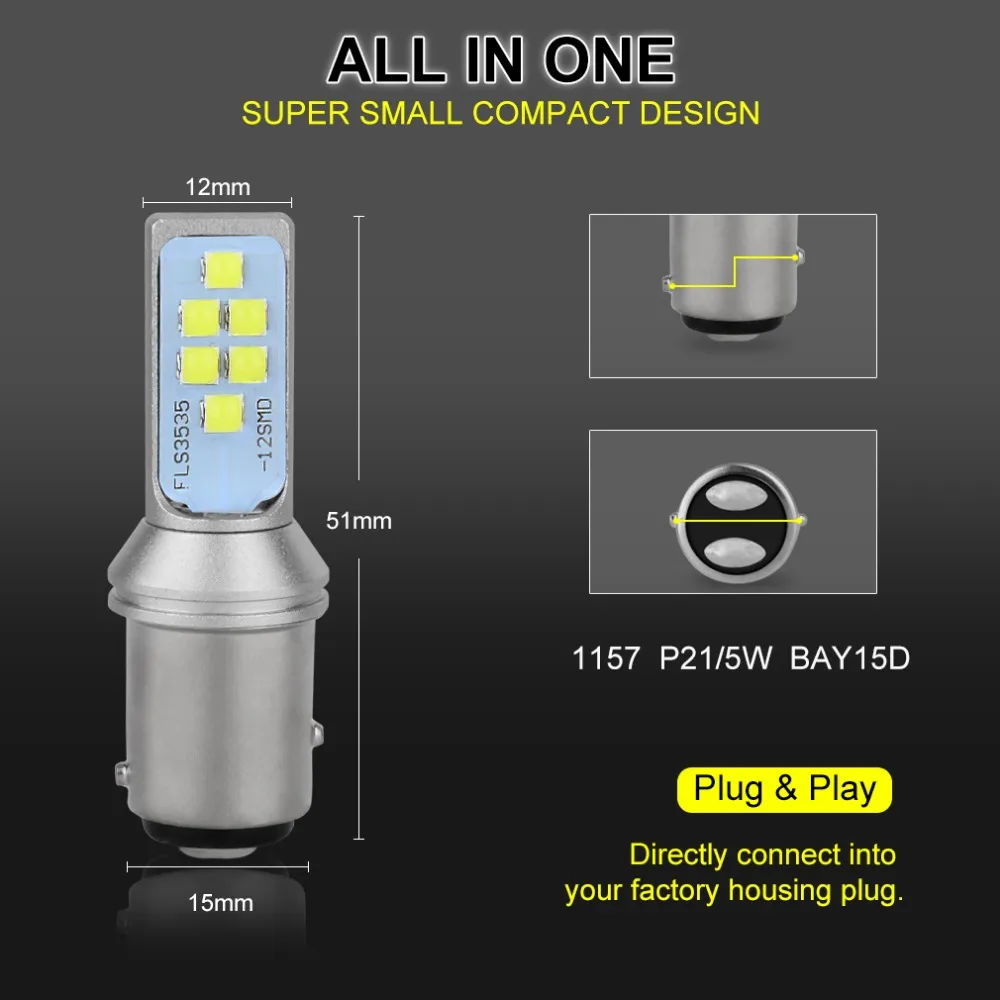 Compatible with: 1157(BAY15D) P21/5W 1016 1034 1076 1130 1142 1152 1154 1158 1493 2057 2357 2396 2397 3496 3497 7528 12499 12594 …(For Reference Only)