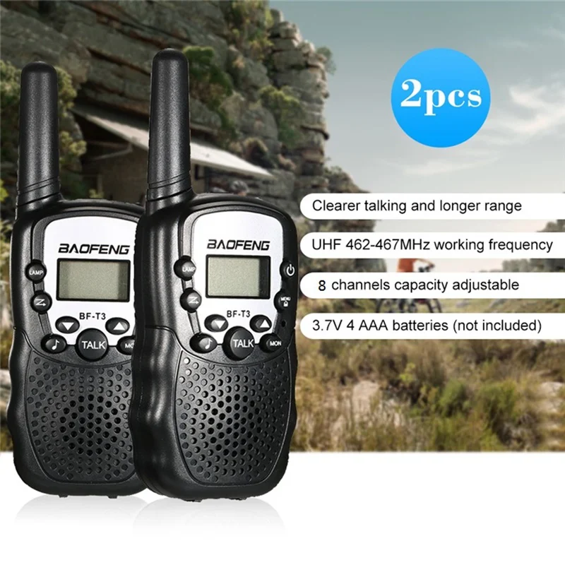2Pcs Baofeng BF-T3 Radio Walkie Talkie UHF462-467MHz 8 Channel Two-Way Radio Transceiver Built-in Flashlight 5 Color for Choice