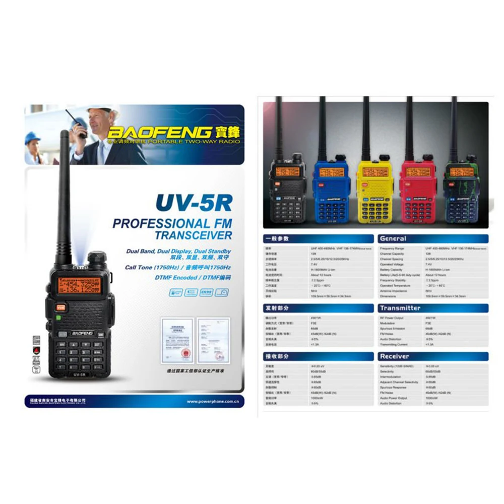 The BAOFENG UV-5R interphone support long communication range, scrambler, noise reduction circuit, long standby time, FM radio.