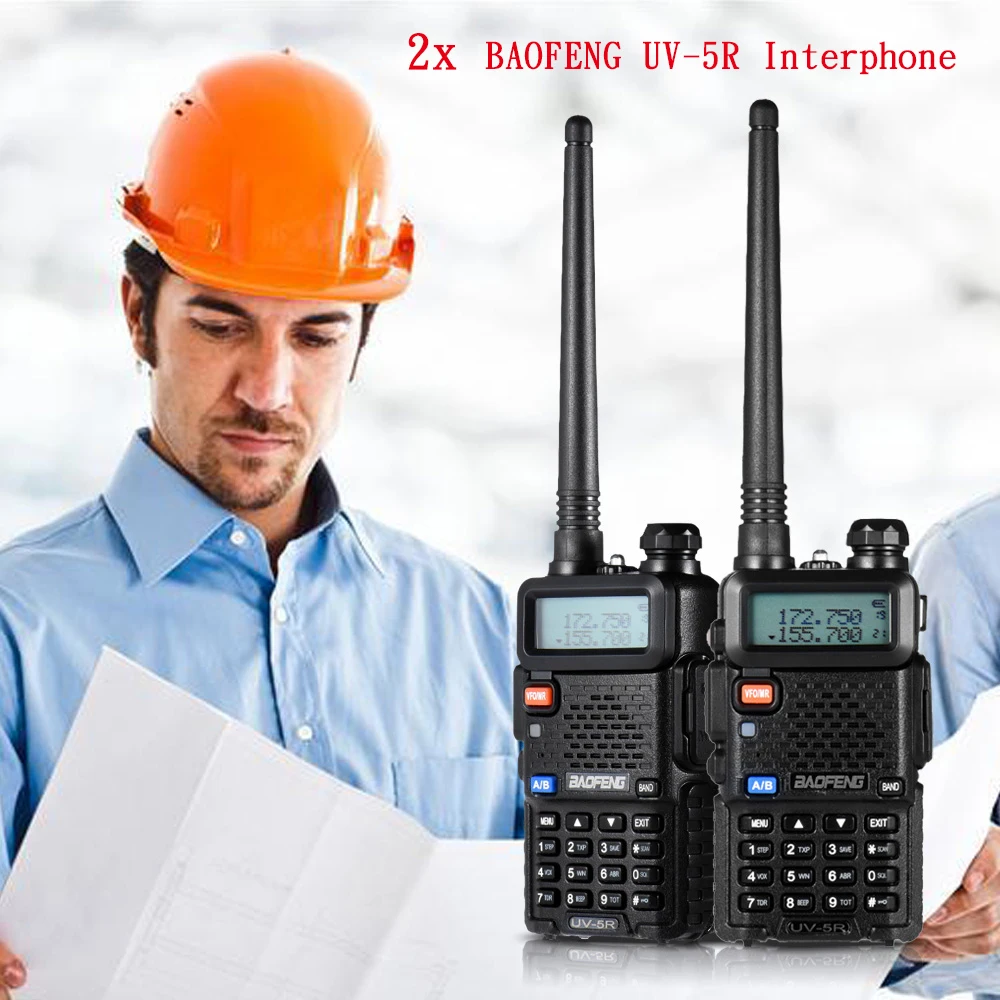 2pcs BAOFENG UV-5R Interphone Walkie Talkie Two Way Radio FM Transceiver Dual-band DTMF VOX Alarm LED Flashlight Key Lock