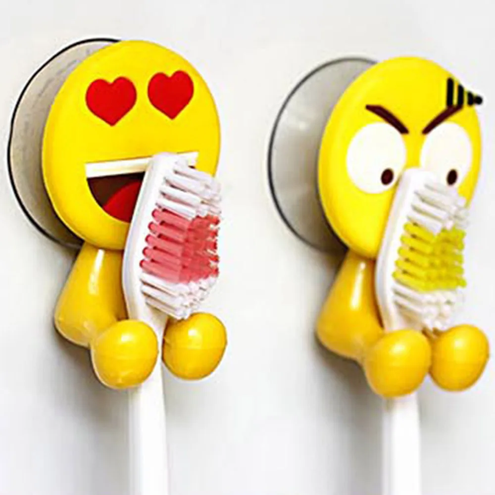 2PCS Cute Expression Toothbrush Suction Holder Bathroom Cartoon Toothbrush Rack Hooks 2o0809