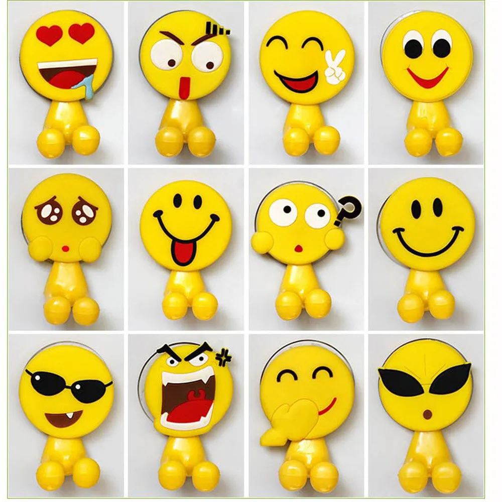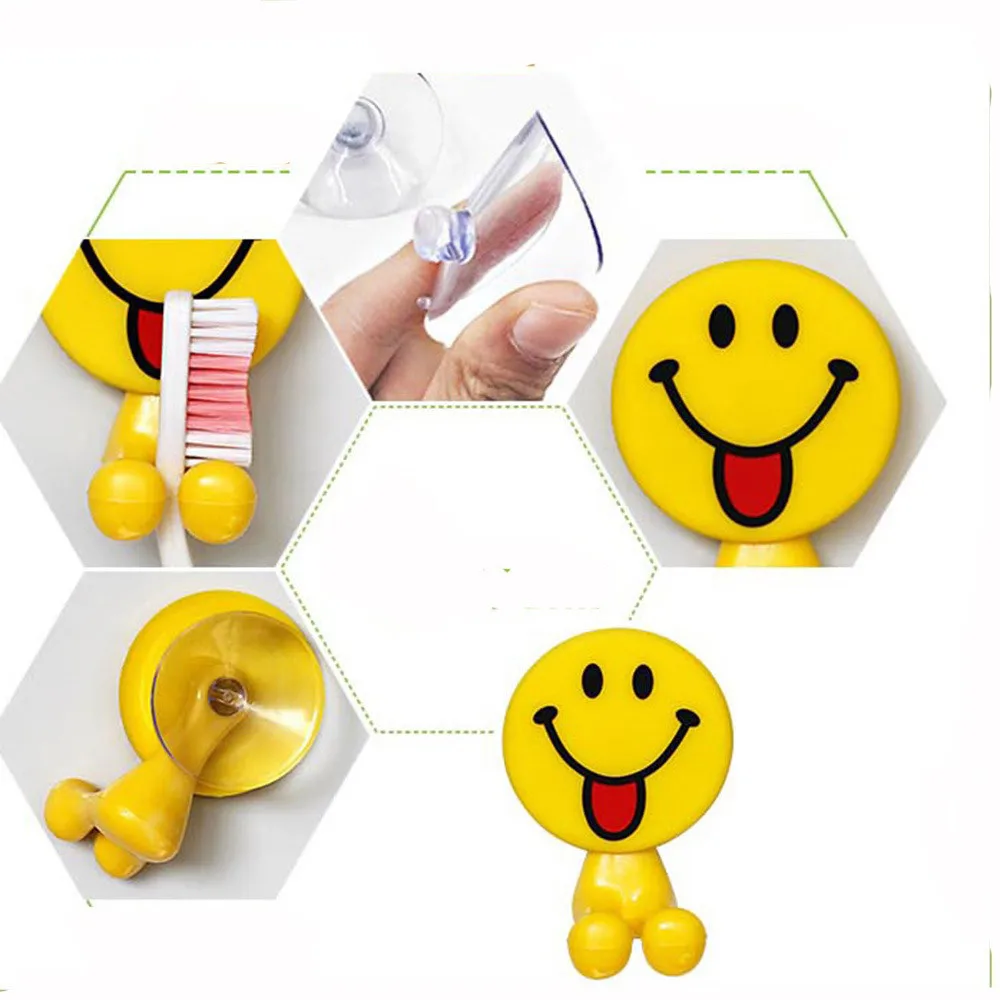 2PCS Cute Expression Sucker Toothbrush Holder Bathroom Cartoon Toothbrush Rack Hooks