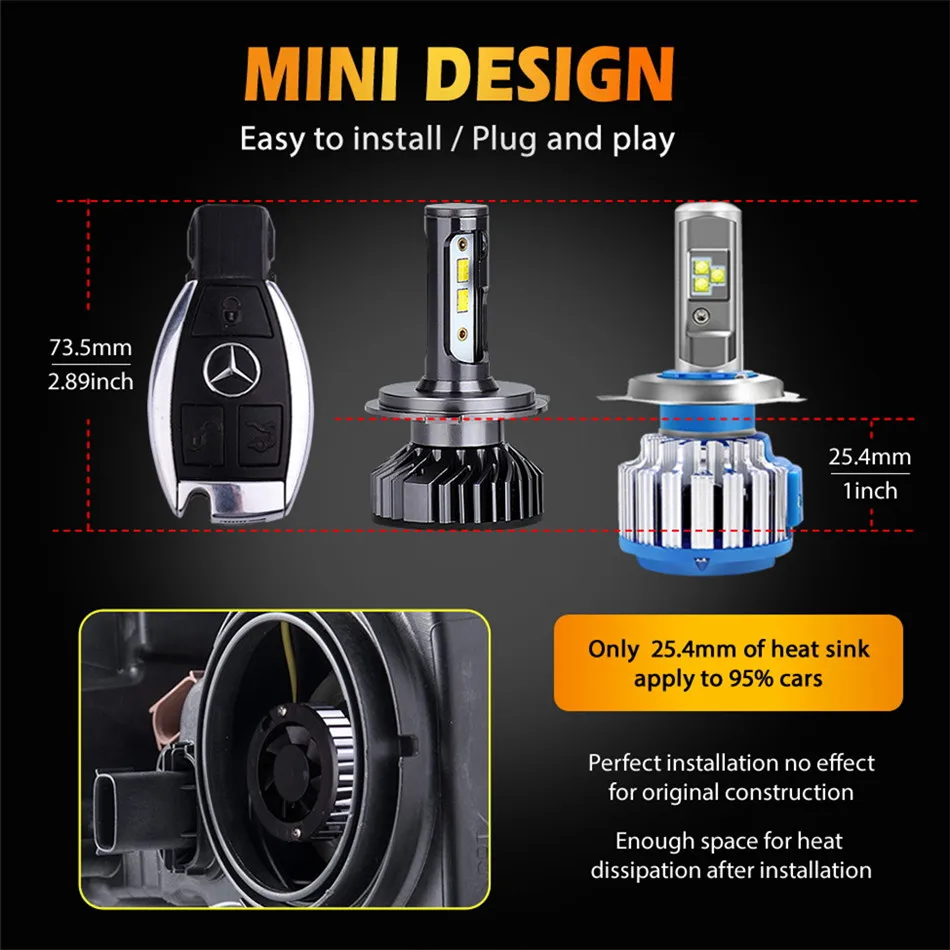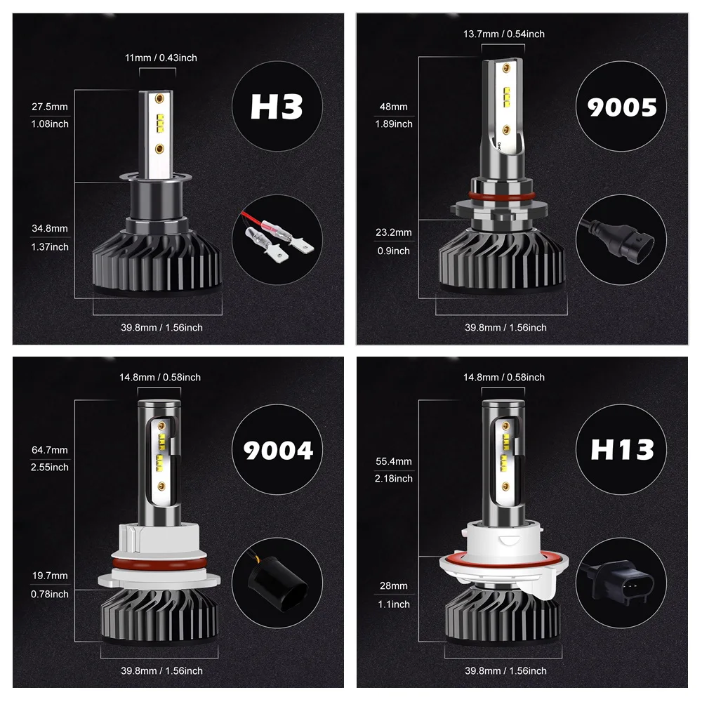 2Pcs H7 LED H4 H11 H1 H8 9006 HB4 H3 HB3 H9 H27 Car Headlight Bulbs LED Lamp with Philips Chip 8000LM Auto Fog Lights 6500K 12V