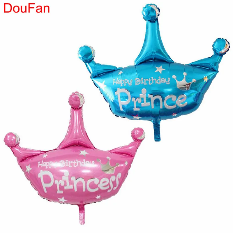 Product Features: 2pcs Happy Birthday Princess Crown Balloon Blue Prince Balloon Pink Foil Balloon Baby Shower Supplies Kids Birthday Party Decor