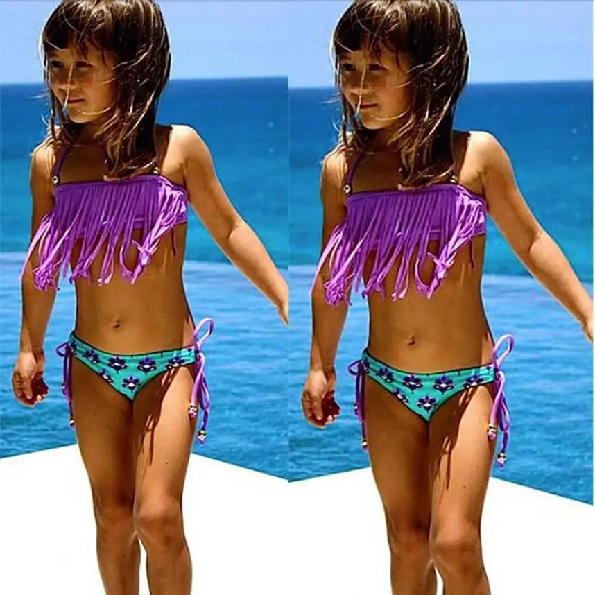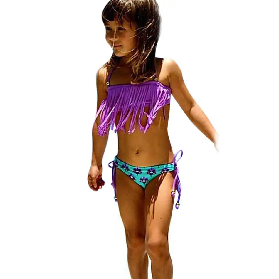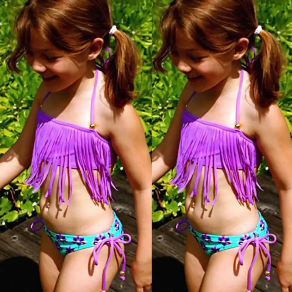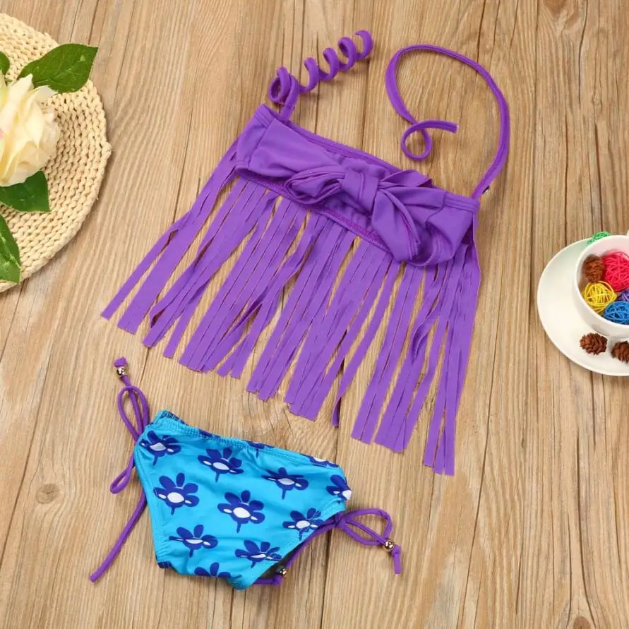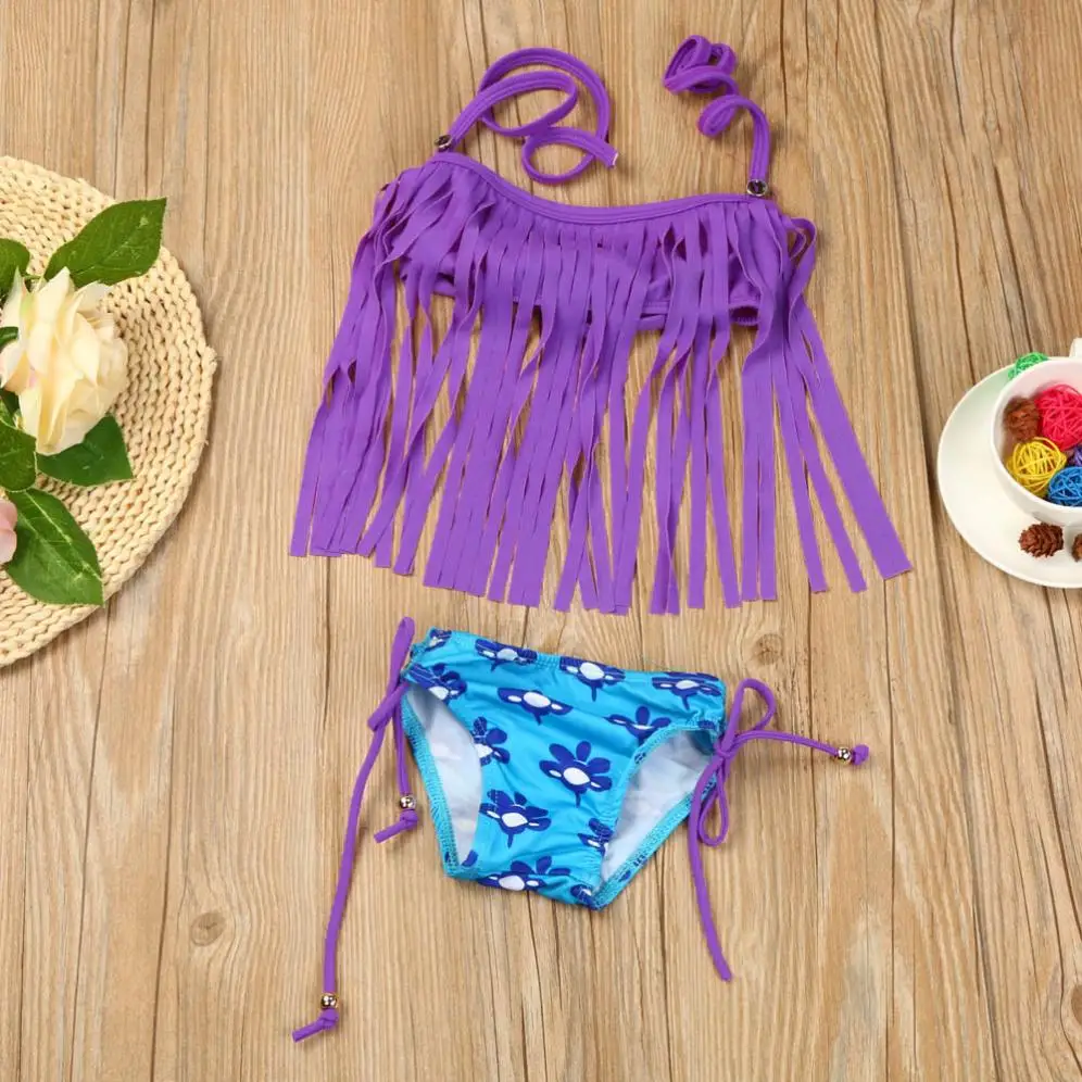 2Pcs Kids Baby Girl Tassels Swimsuit Swimwear Bathing Bikini Clothes Outfits 18 Months~5y 2018 New Summer Girls Bathing Suit