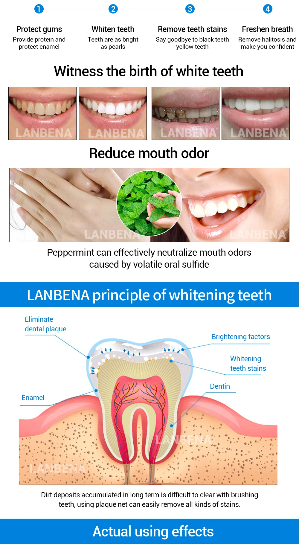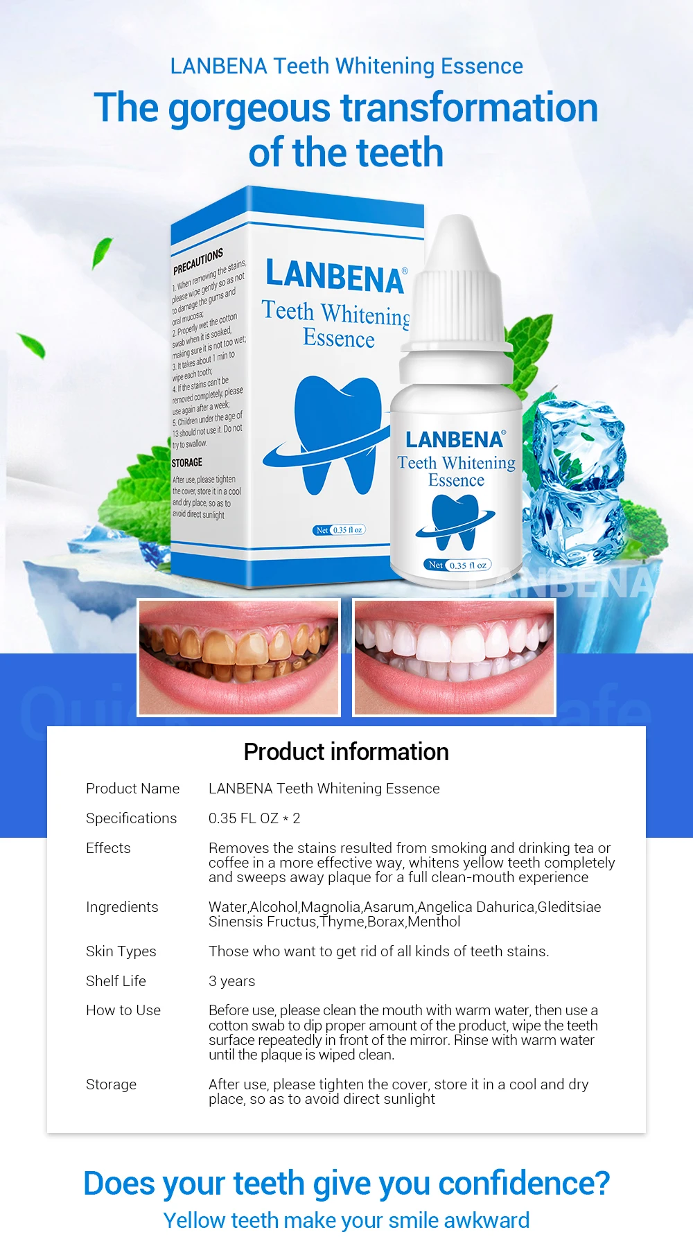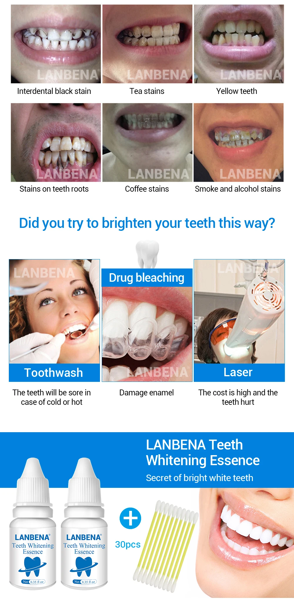 2PCS LANBENA Teeth Whitening Essence Powder Oral Hygiene Cleaning Serum Removes Plaque Stains Tooth Bleaching Dental Tools