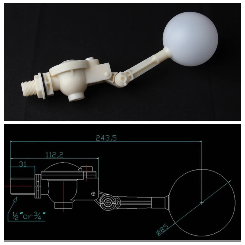 2pcs/lot 1/2″ 3/4″ Male Thread Long Rod Floating Ball Valve ABS Adjustable Water Level Aquarium Tank Cooling Tower Replenishing