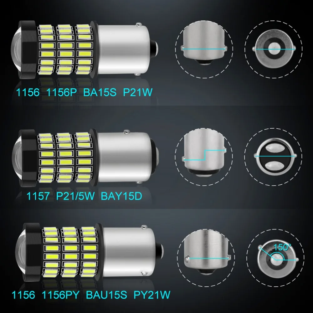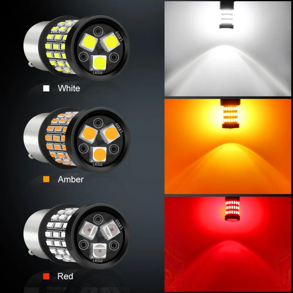 2pcs P21W 1156 BA15S LED White Amber Red 1157 BAY15D P21/5W BAU15S PY21W LED Bulb 12V R5W R10W Car Turn Signal Brake Lights Auto