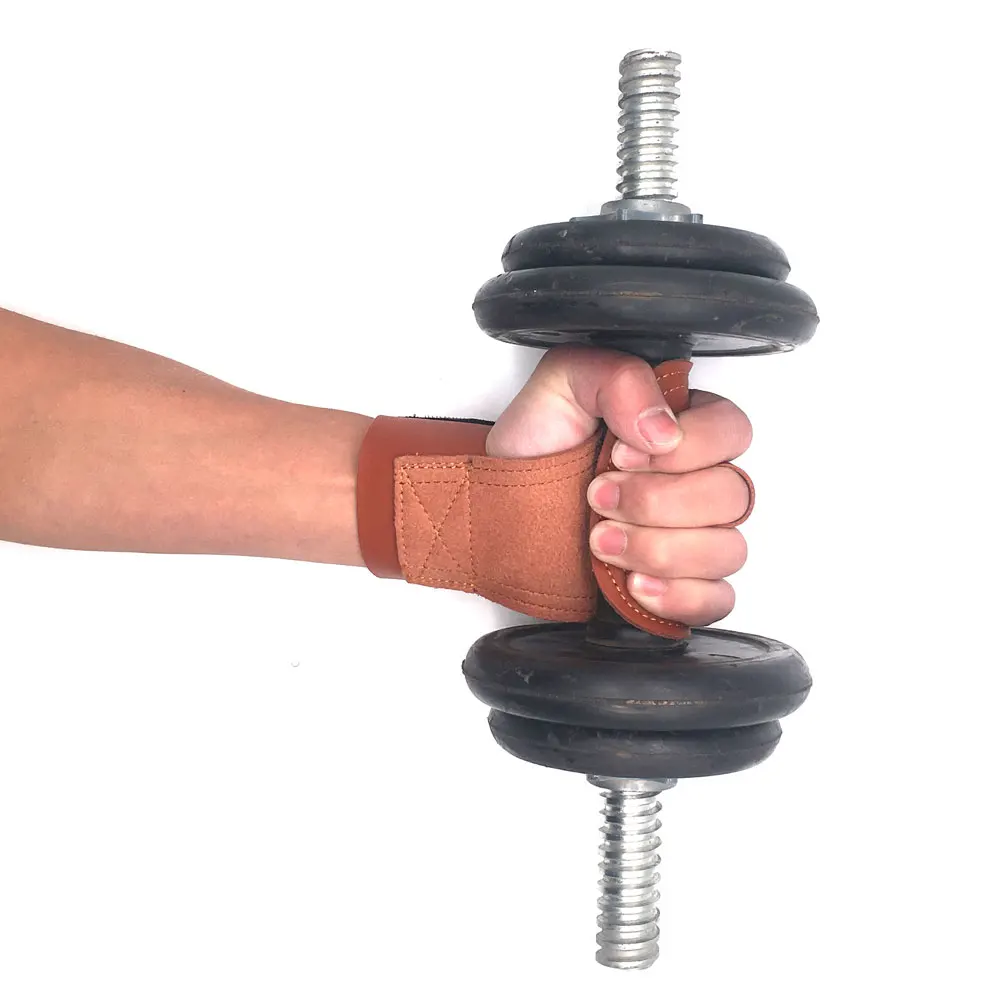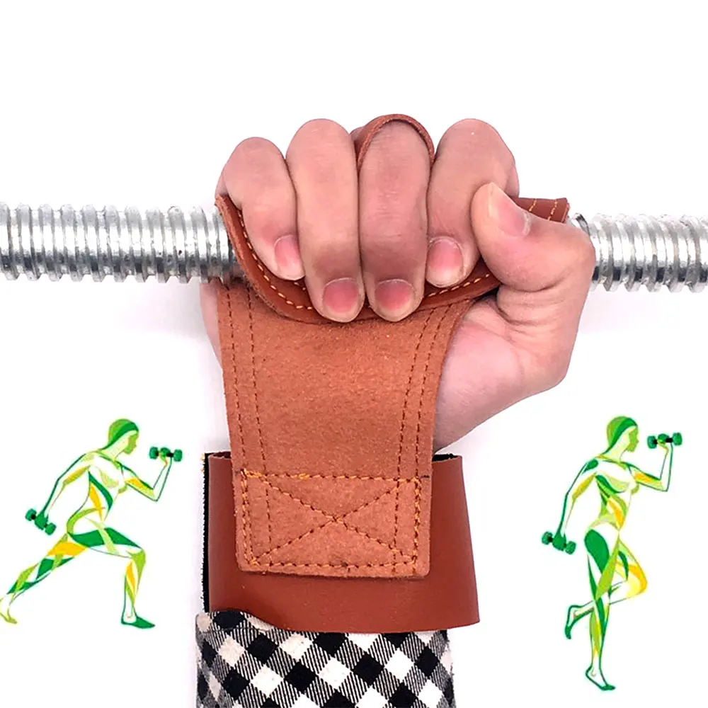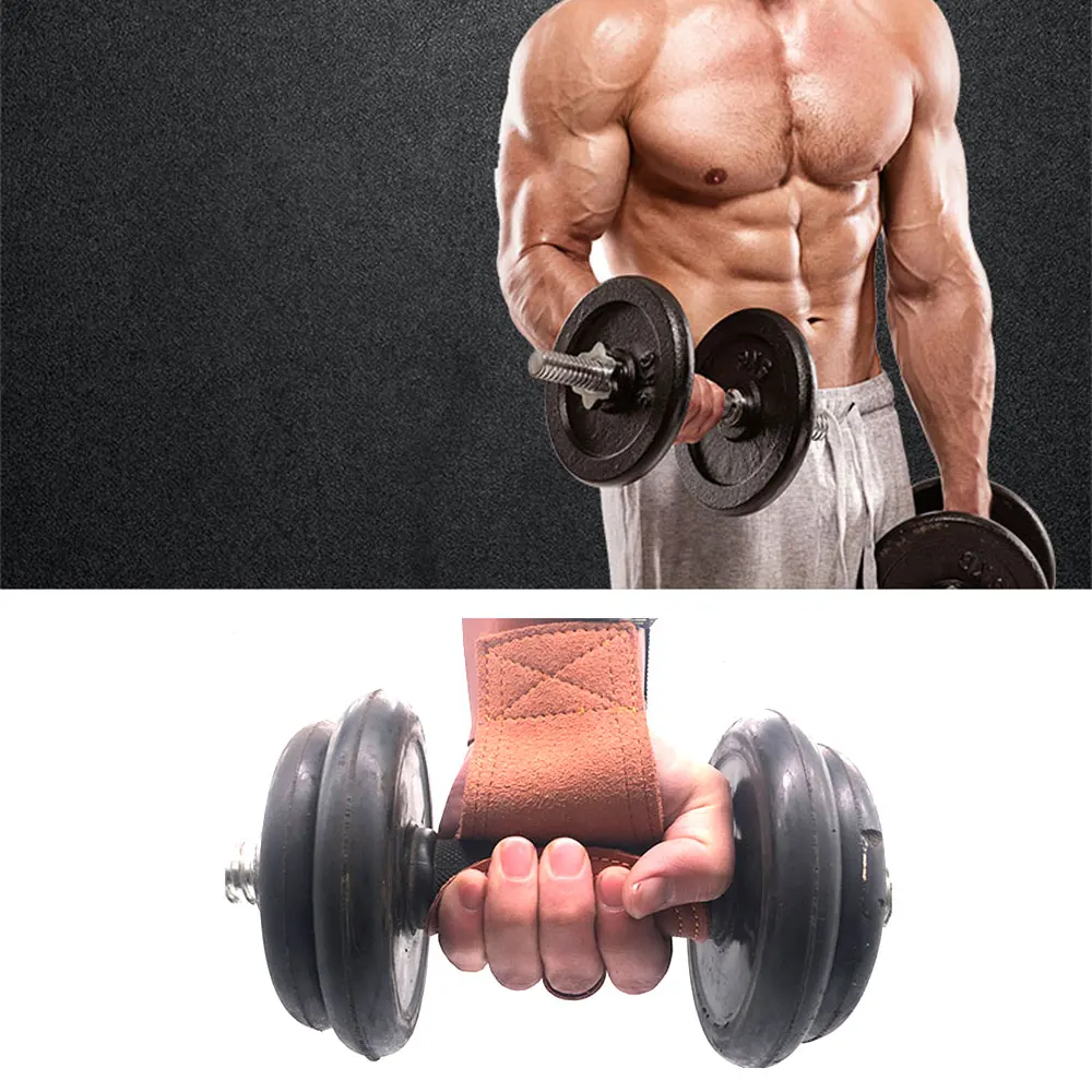 2pcs / Pair Pure Leather Weight Lifting Grip belt gym with non-slip grip belt tension thickened wrist weightlifting dumbbell