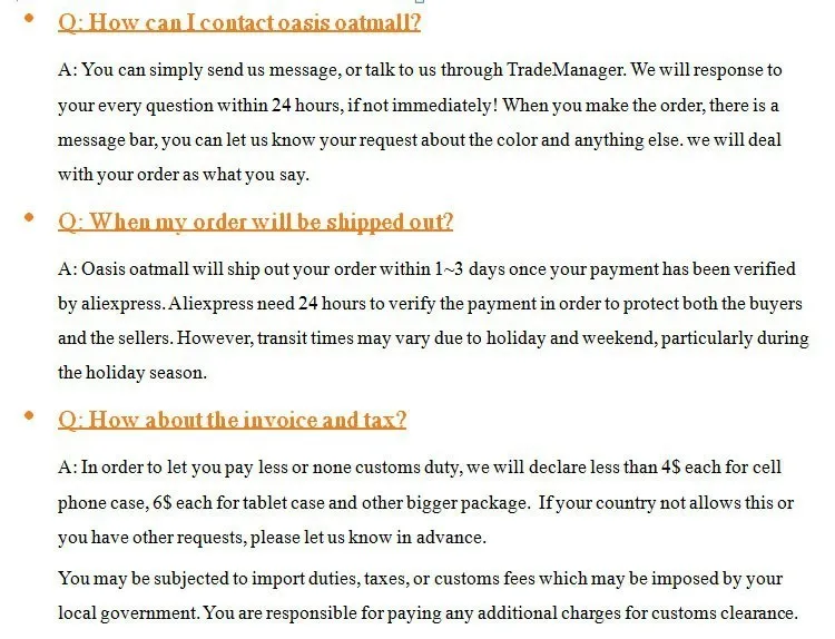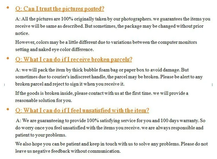 We are not responsible for any custom fees once the items have shipped. By purchasing our products, you consent that one or more packages may be shipped to you and may get custom fees when they arrive in your country.