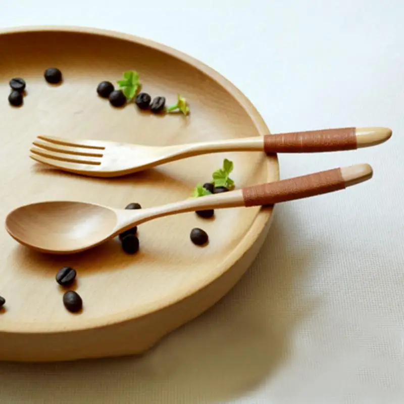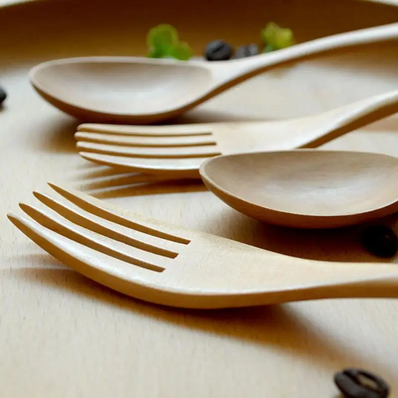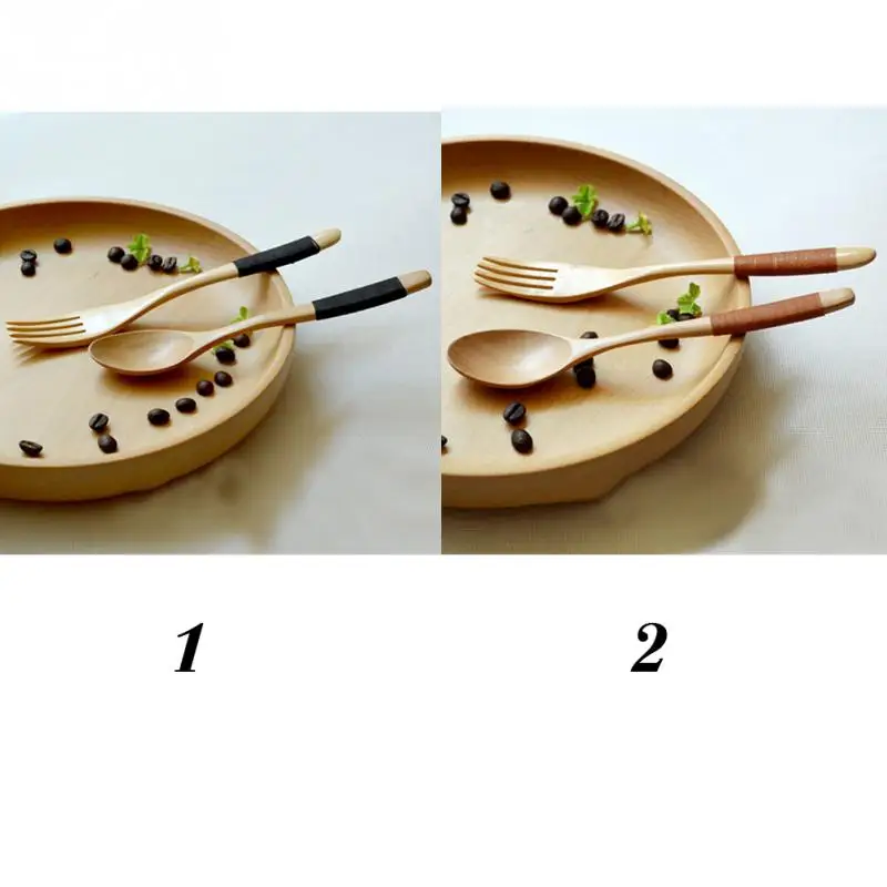 2Pcs/set Lightweight Natural Eco-friendly Wooden Log Coffee Fork For Kitchen Supplies Tableware