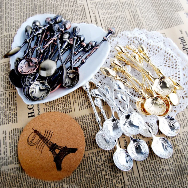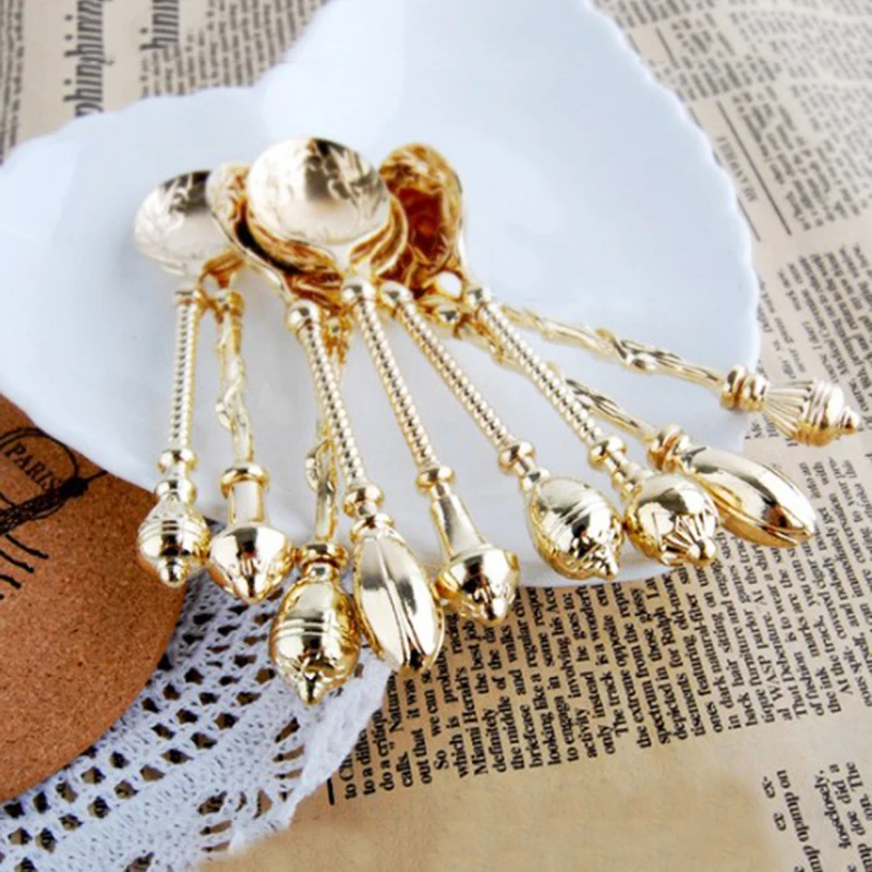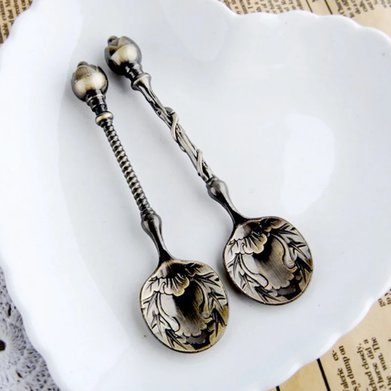 2pcs/Set Metal Vintage Coffee Spoon Gold Silver Long Handle Kitchen Flatware Tea Spoons Decoration Dessert Spoons Scoops 7/23