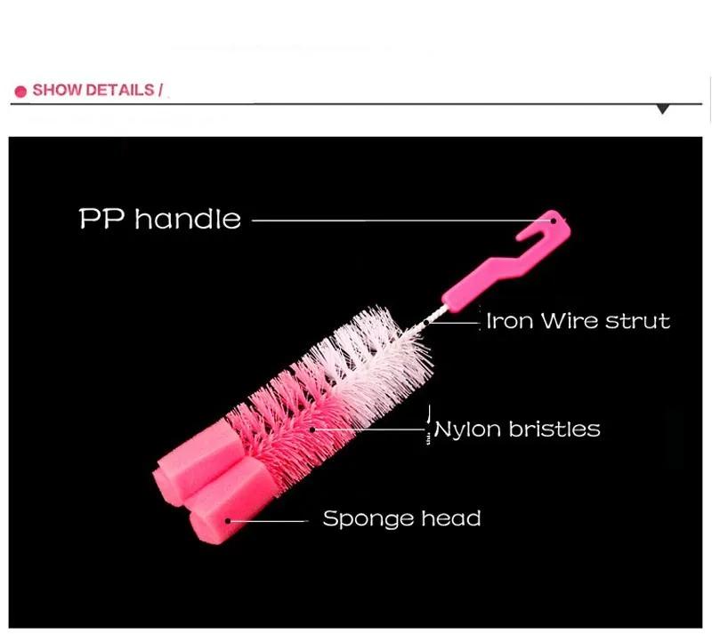 Sponge brush bottle nipple brush head piece 360 degree rotating wash bottle brush Cleaning Bottle Brush