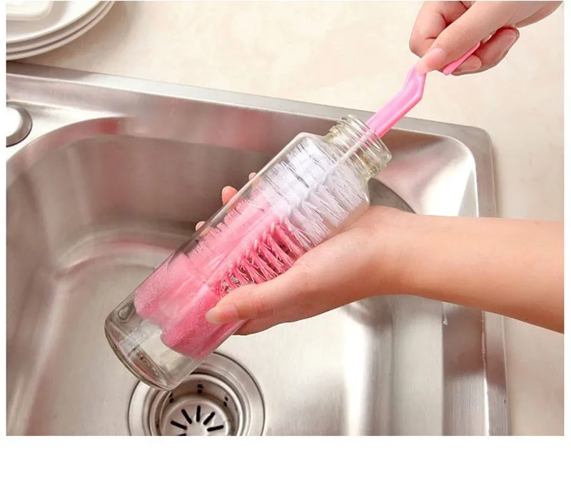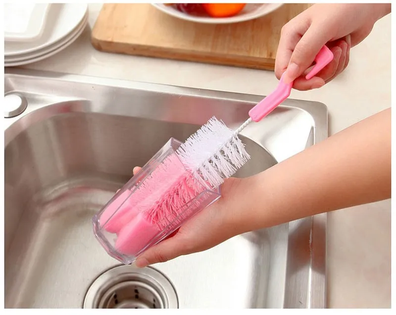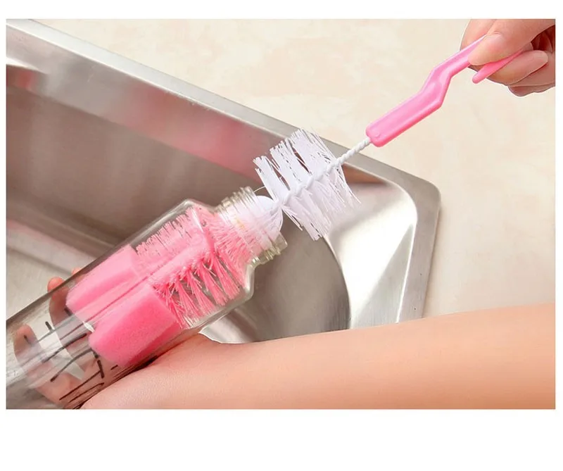 2Pcs/Set Sponge Brush Bottle Nipple Brush Head Piece 360 Degree Rotating Wash Bottle Brush Cleaning Bottle Brush Random Color