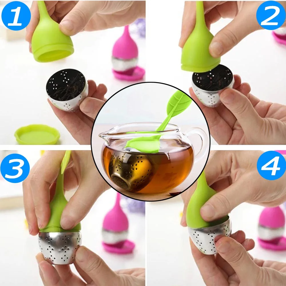 | 1: | Made of FDA-approved,pure food-grade silicone and stainless steel,safe to use.Easy to clean: Discard the used leaves and rinse with warm soapy water. | ||