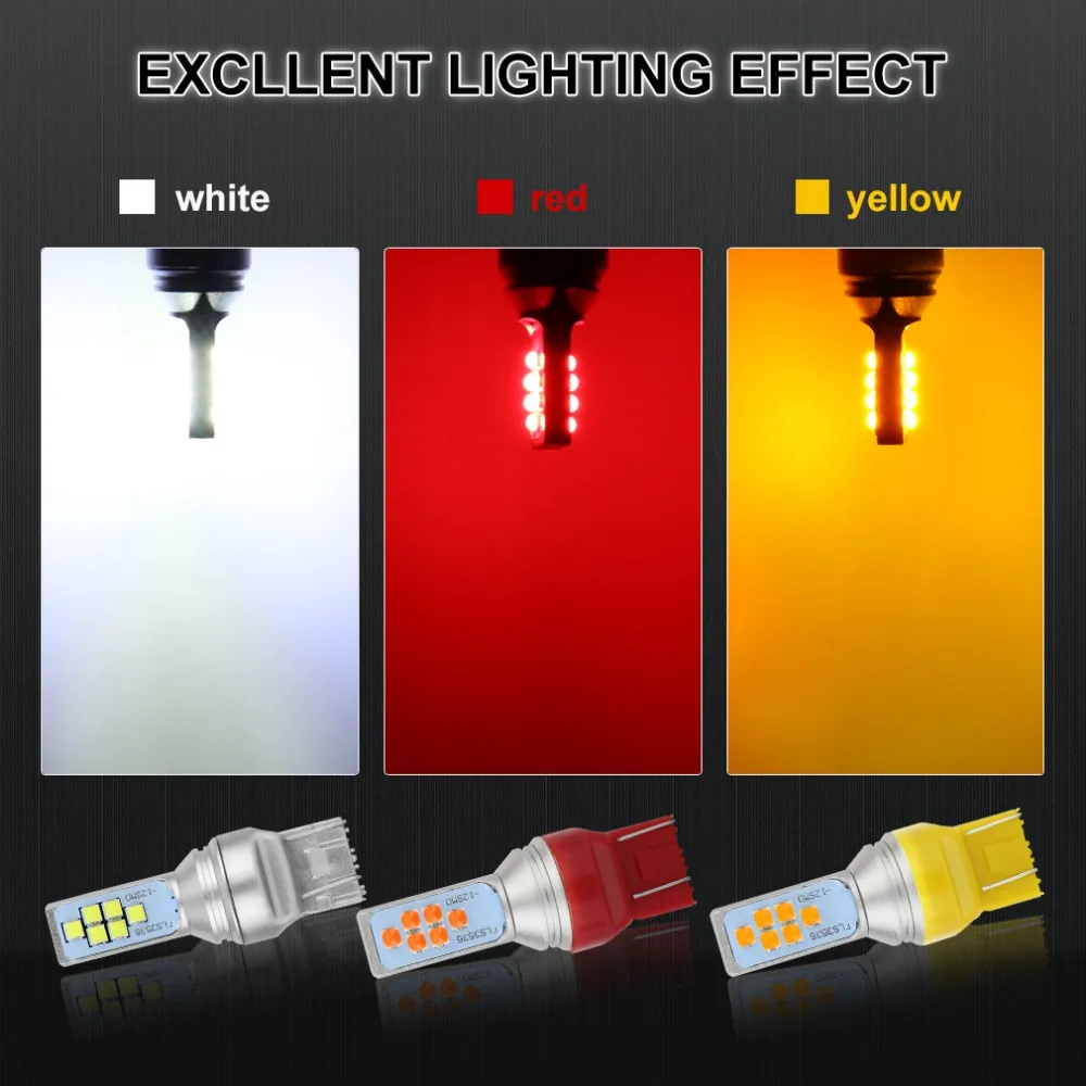 2pcs T20 W21/5W 7443 7440 W21W WY21W LED T25 3157 P27/7W LED Bulbs 12V Car Lights Brake Reverse Tail Lamp White Red Amber