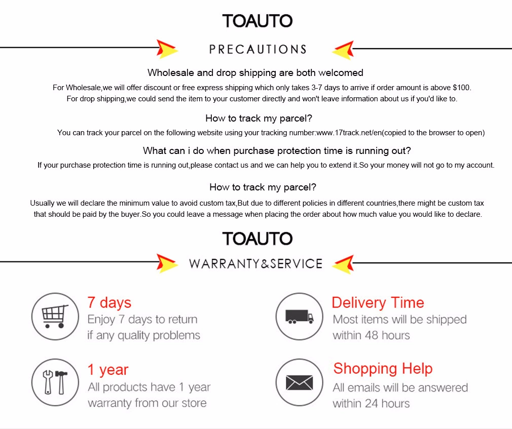 • If you did not receive the product within the guaranteed time( 45 days not including 2-5 day processing) you can request a refund or a reshipment.