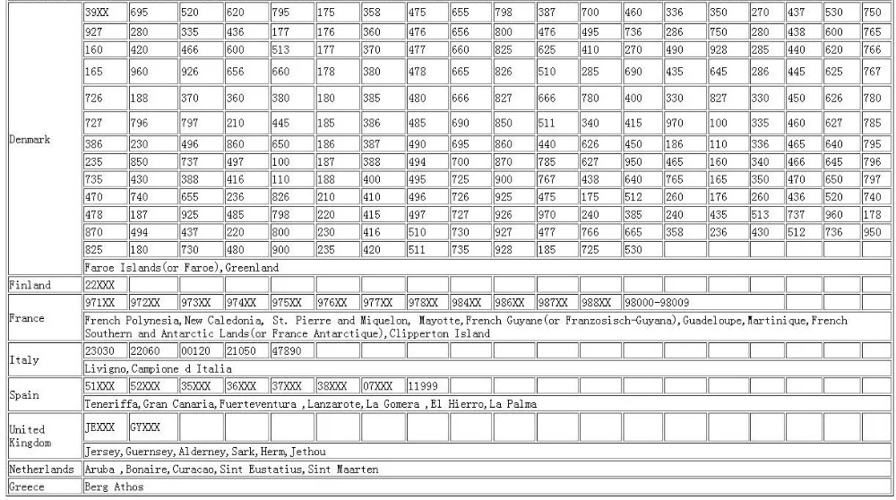 Note:These zip code belong to remote area,we can’t sent out parcel.Before you place your order,please make sure yours is not in these table.
