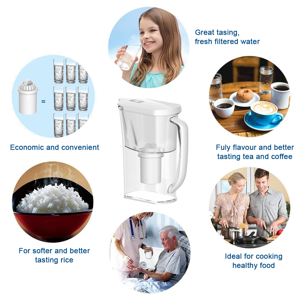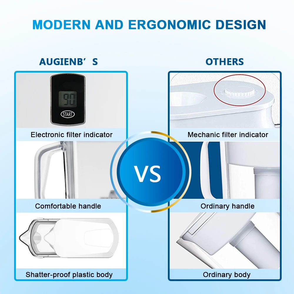-MODERN DESIGN & ERGONOMIC DESIGN — The water pitcher comes equipped with a simple and convenient easy-fill lid to allow you to fill the reservoir without removing the cover. Easy pour spout ensures the perfect pour with no mess and our ergonomic handle ensures comfort during every use.For optimum performance, a helpful electronic filter indicator tracks when your water filter needs to be replaced.