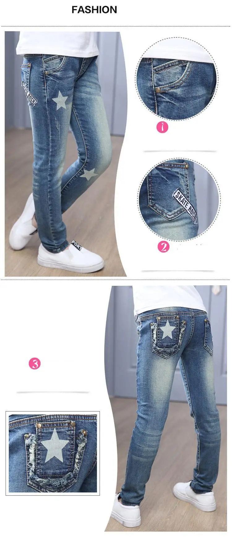 3 4 5 6 7 8 9 10 11 12 Year Girls Jeans 2018 Spring Summer Children Pants Star Printed High Quality Jean for Girl Kids Trousers