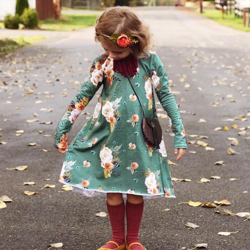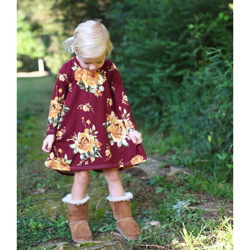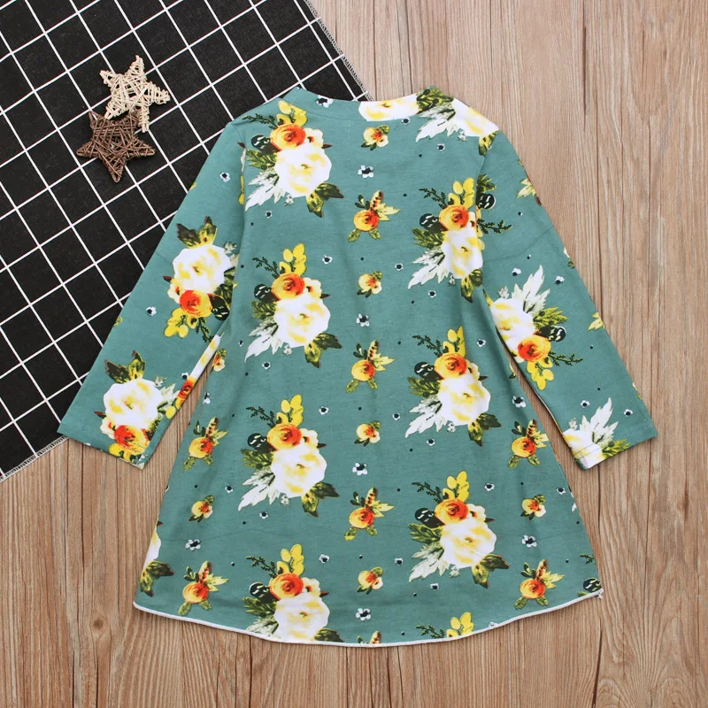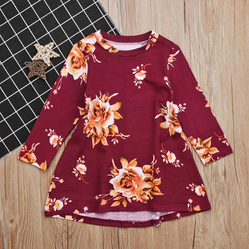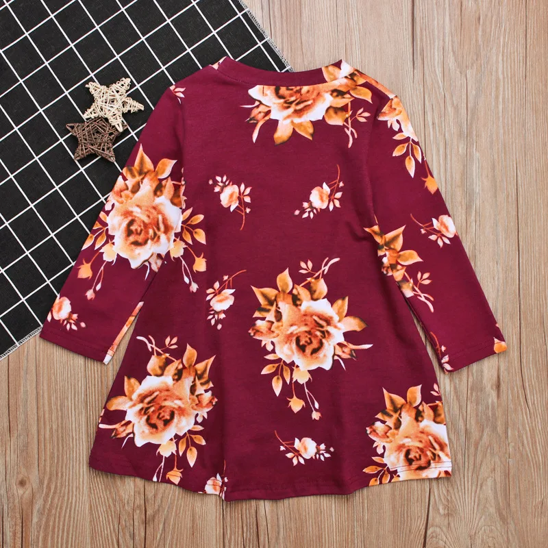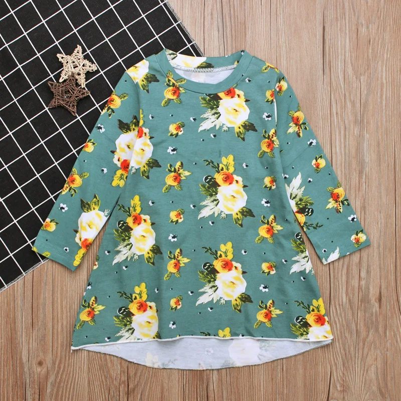 3-7T 2018 Vestido baby girls dress Toddler Infant Kids Baby Girls Dress Floral Print Sun Dresses Clothes Outfits