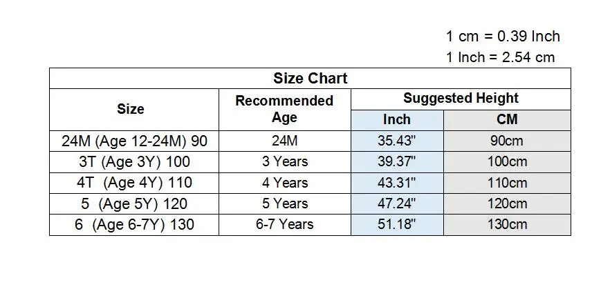 Kid US Size: