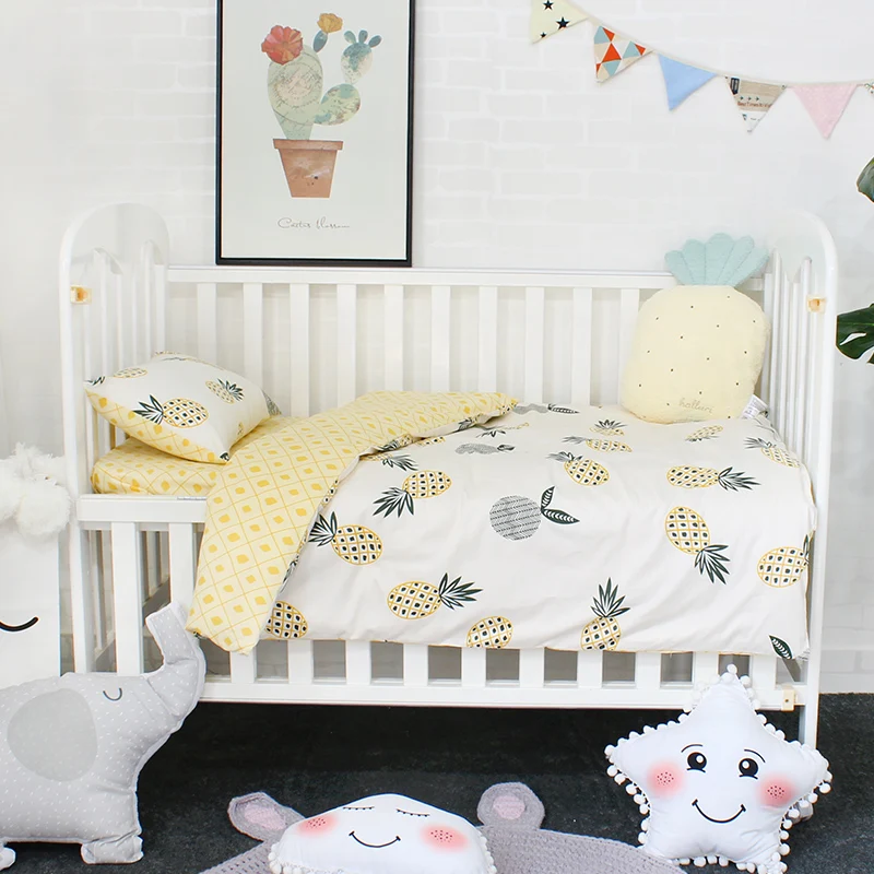 3 Pcs Baby Bedding Set Bed Linen For Children Pure Cotton Crib Cot Kit Include Duvet Cover Pillowcase Flat Sheet For Girls Boys
