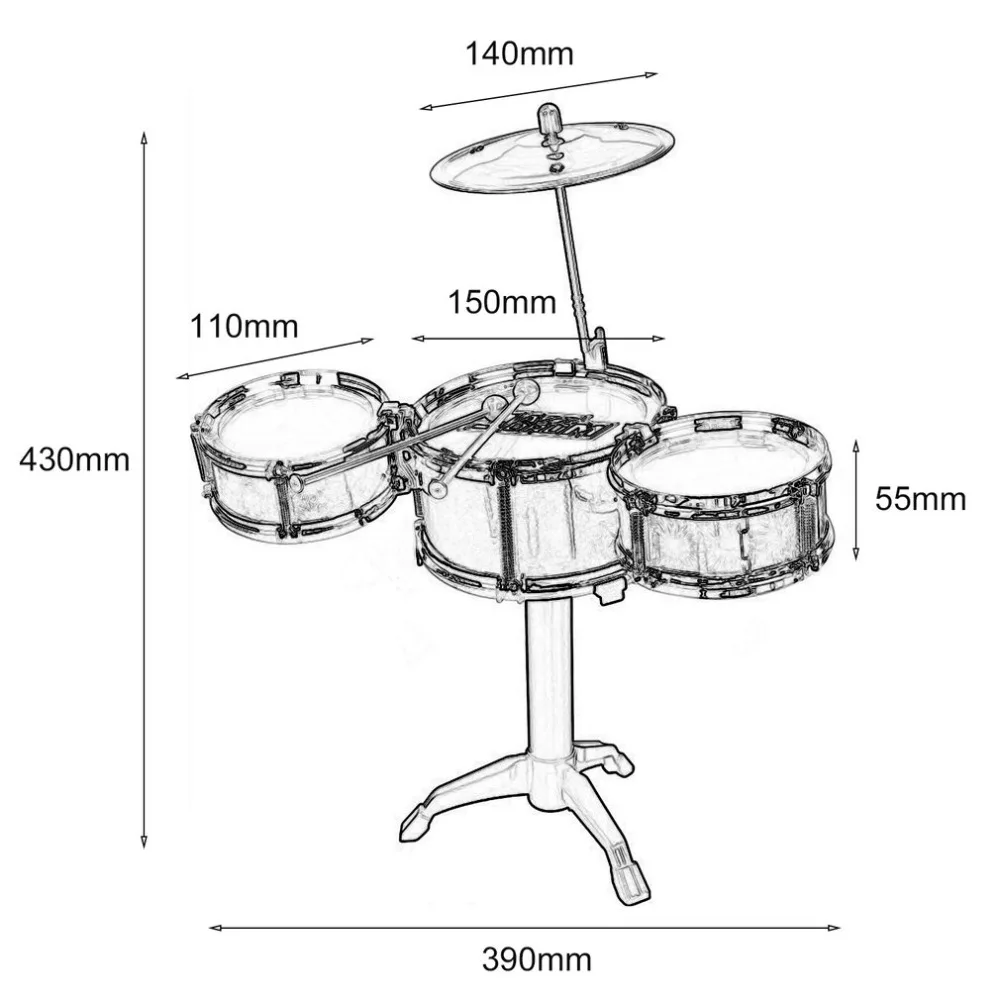 Simulation jazz drum with 3 drums and one symbal design, easy to install and remove.