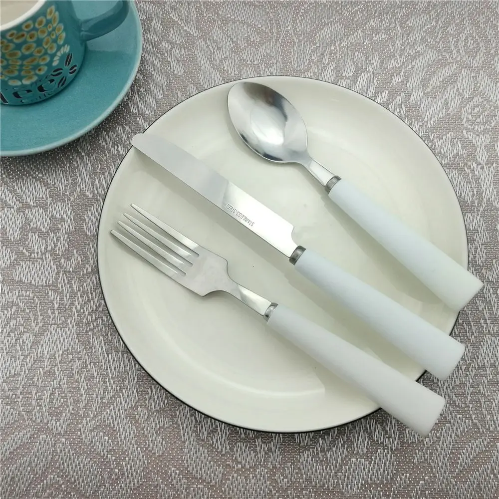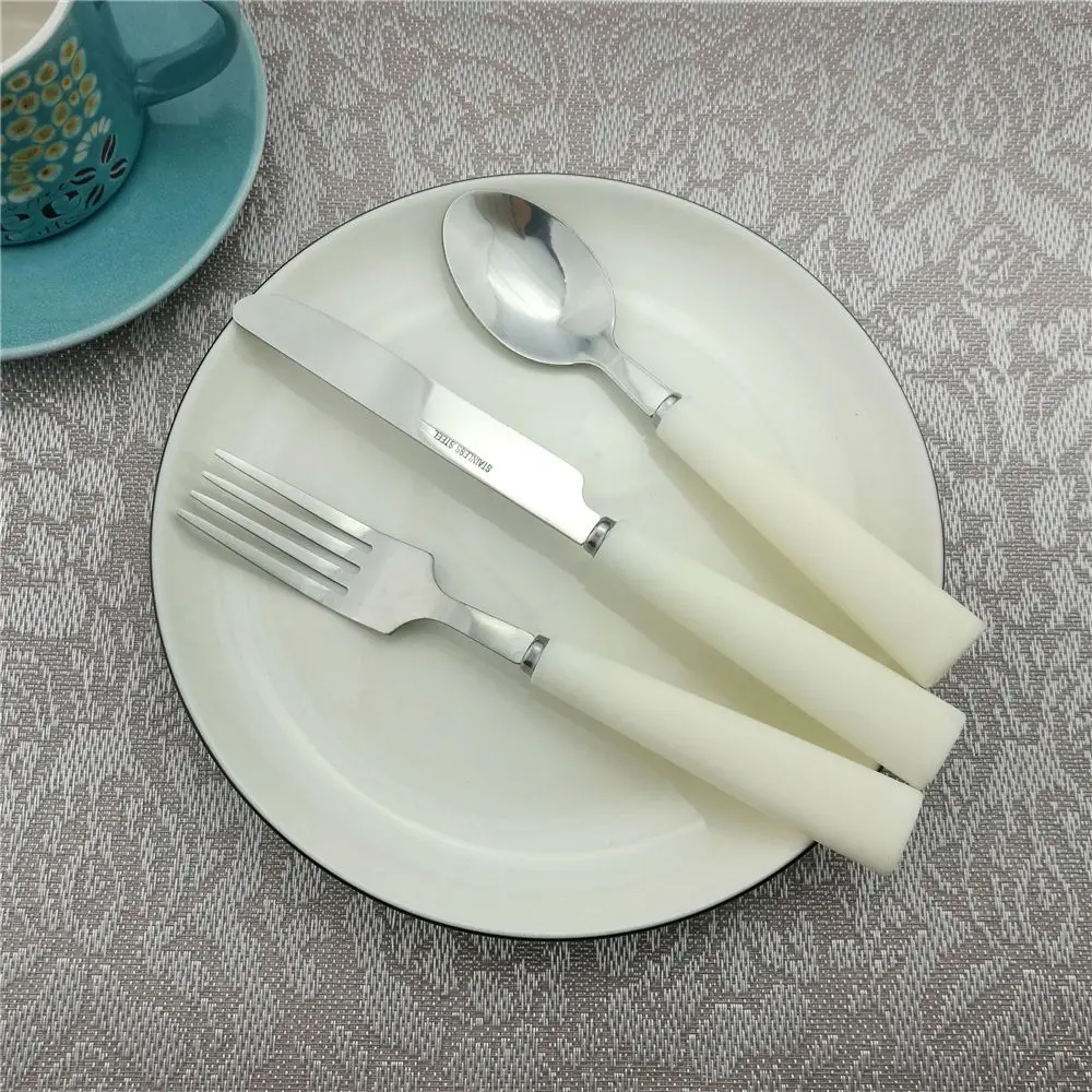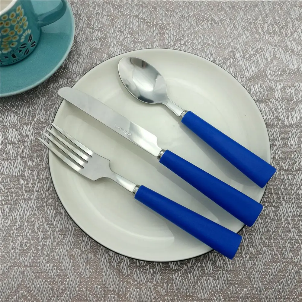 3-Pieces Stainless Steel Silverware Set Kids Matte White Blue Handle Fork Knife Cutlery Set Dinner Tableware Dinnerware