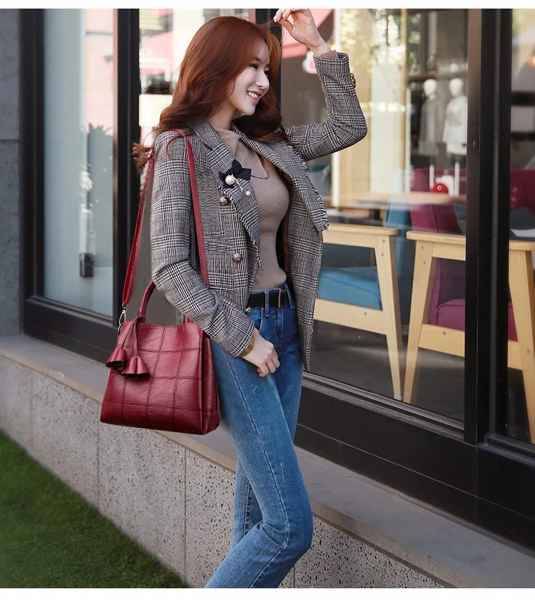 3 Pockets Women Handbag Leather Shoulder Bags Fashion Totes Soft PU Tassel Crossbody Bags for Women Drop Shipping