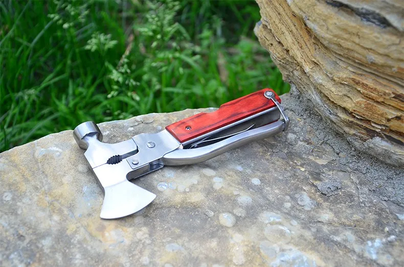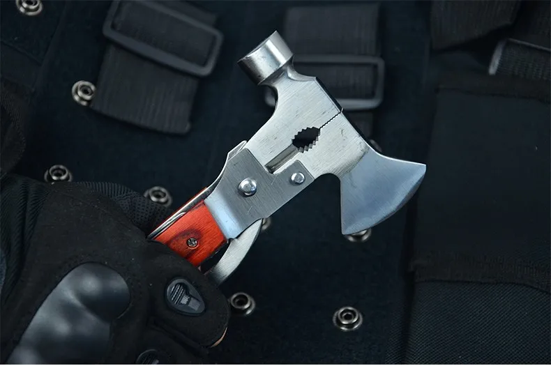 This is a multi-function hand tool , Axe + Hammer + Knife (fish scales knife) + Piler +