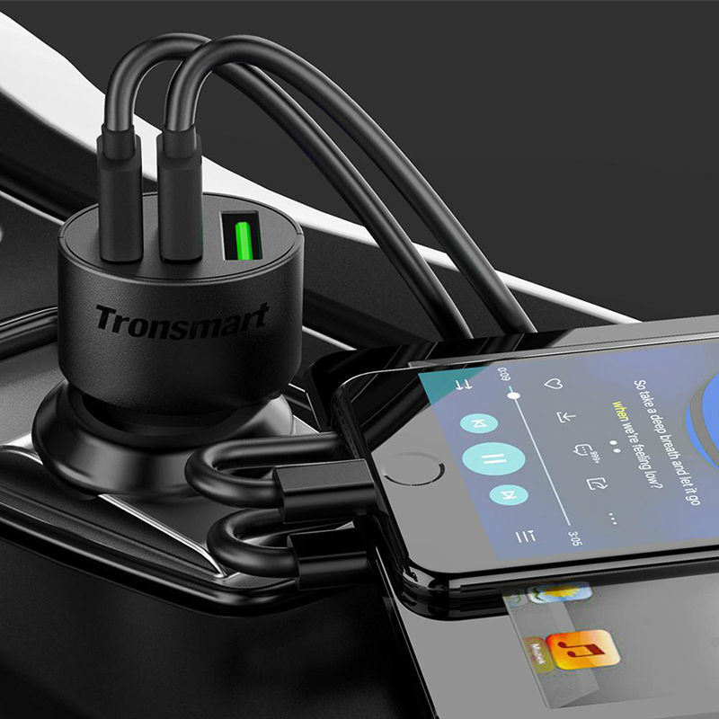 - Tronsmart Quick Charge 3.0 car charger. 1 Quick Charge port compatible with Quick Charge 3.0 and 2 VoltIQ ports. 42W in total.