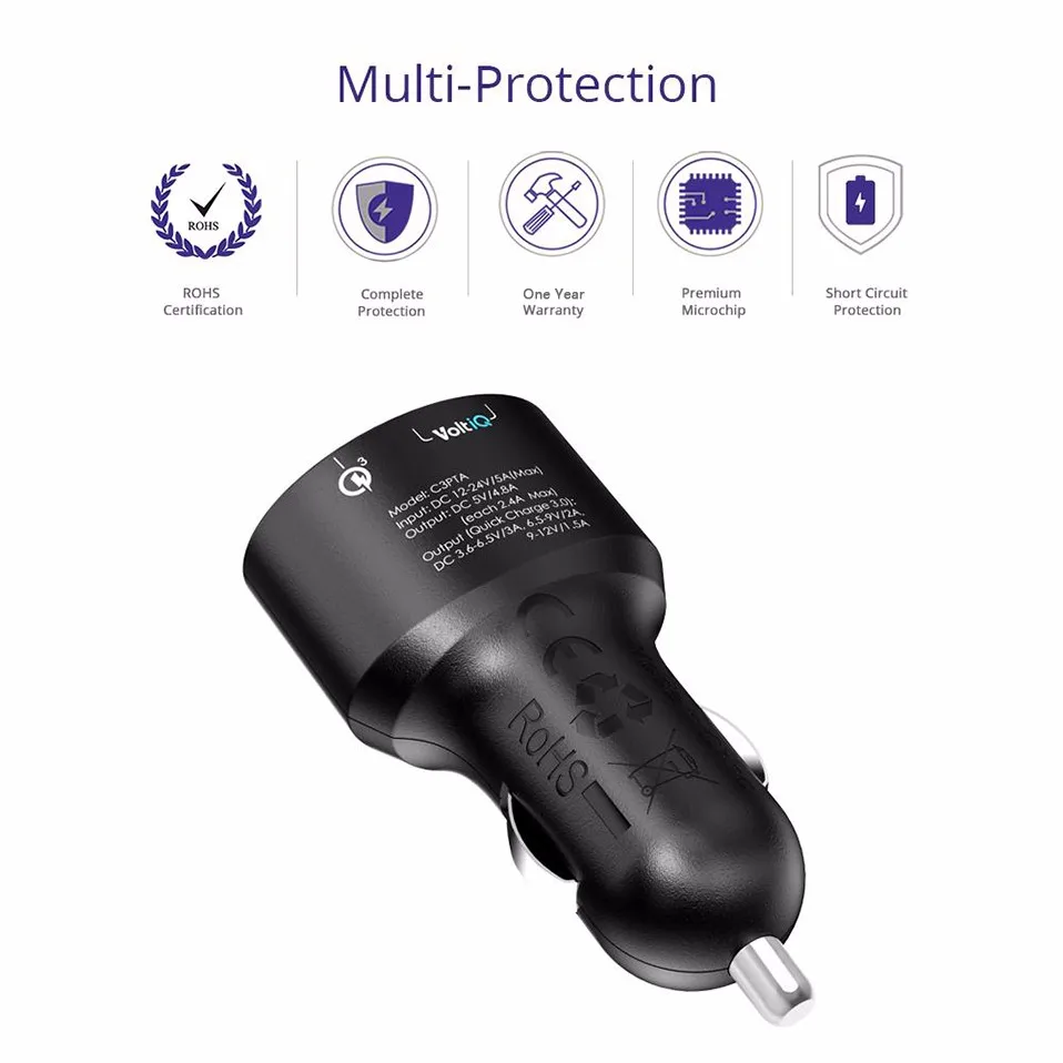 - Supreme Compatibility: Backwards compatible with all versions of Qualcomm Quick Charge technology (1.0, 2.0 & 3.0).