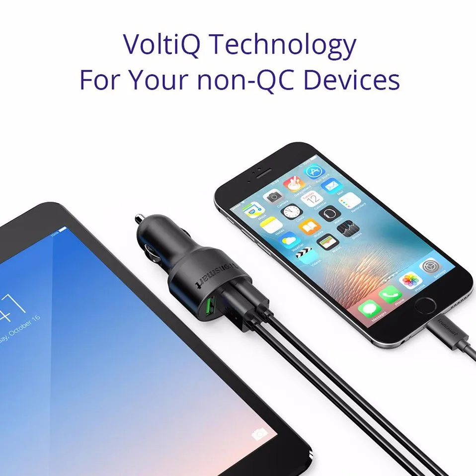 - Tronsmart Quick Charge 3.0 car charger. 1 Quick Charge port compatible with Quick Charge 3.0 and 2 VoltIQ ports. 42W in total.