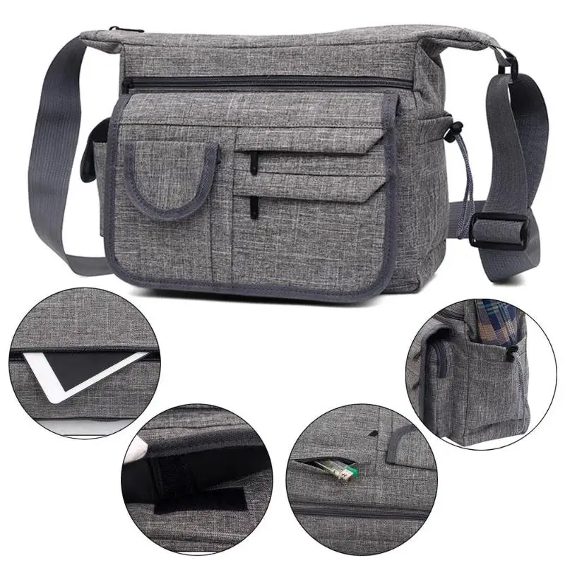 30 X 25 X 12cm Casual Travel Bag Men Teenager Multi Pockets Messenger Bag Vintage Nylon Sling Shoulder Bag Bolsa