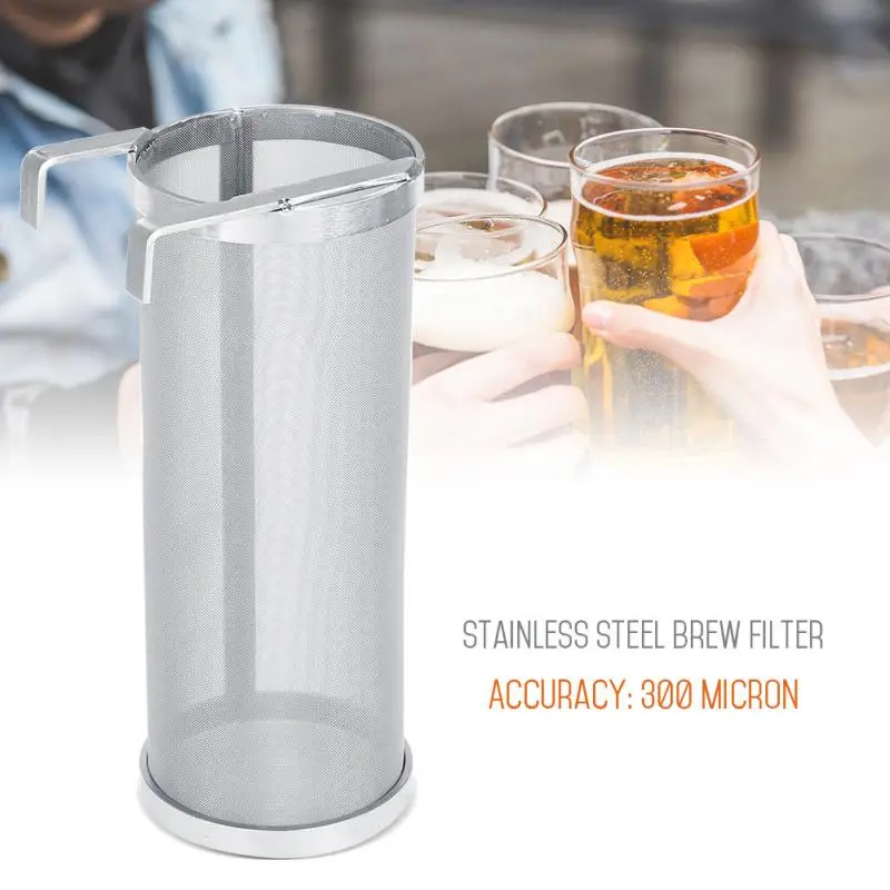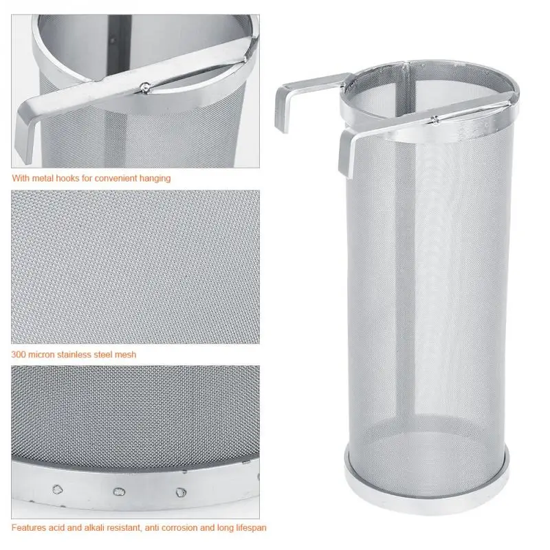 This filter is designed for homemade brew, which can hold hop to reduce impurities and enhance filtration level of fermentation broth, so as to ensure purer taste and aroma. Stainless steel mesh for 300 micron fine filtration. With hooks for hanging, very convenient to use.