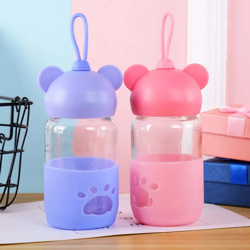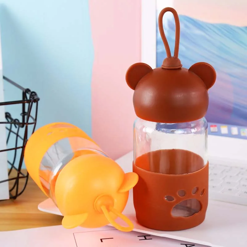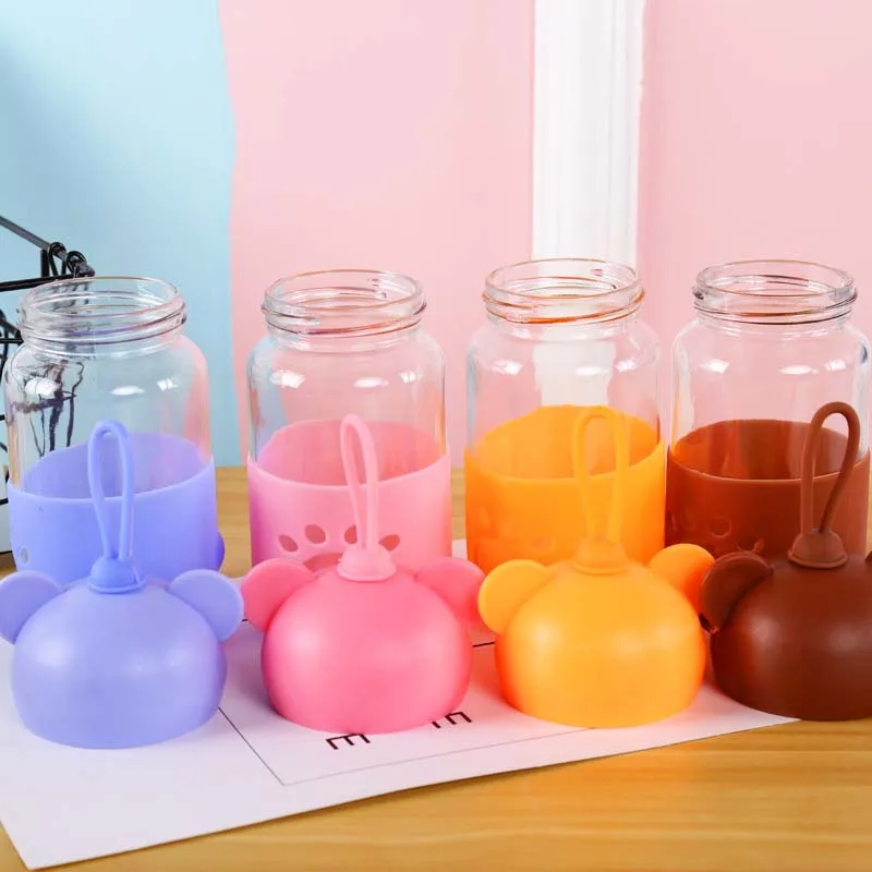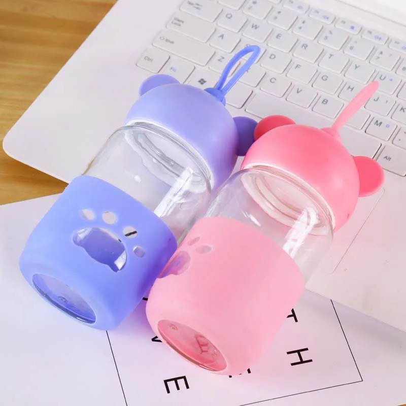 300ml Baby Silicone Milk Feeding Bottle Mamadeira Vidro BPA Free Safe Infant Juice Water Feeding Bottle Cup Glass Nursing Feeder