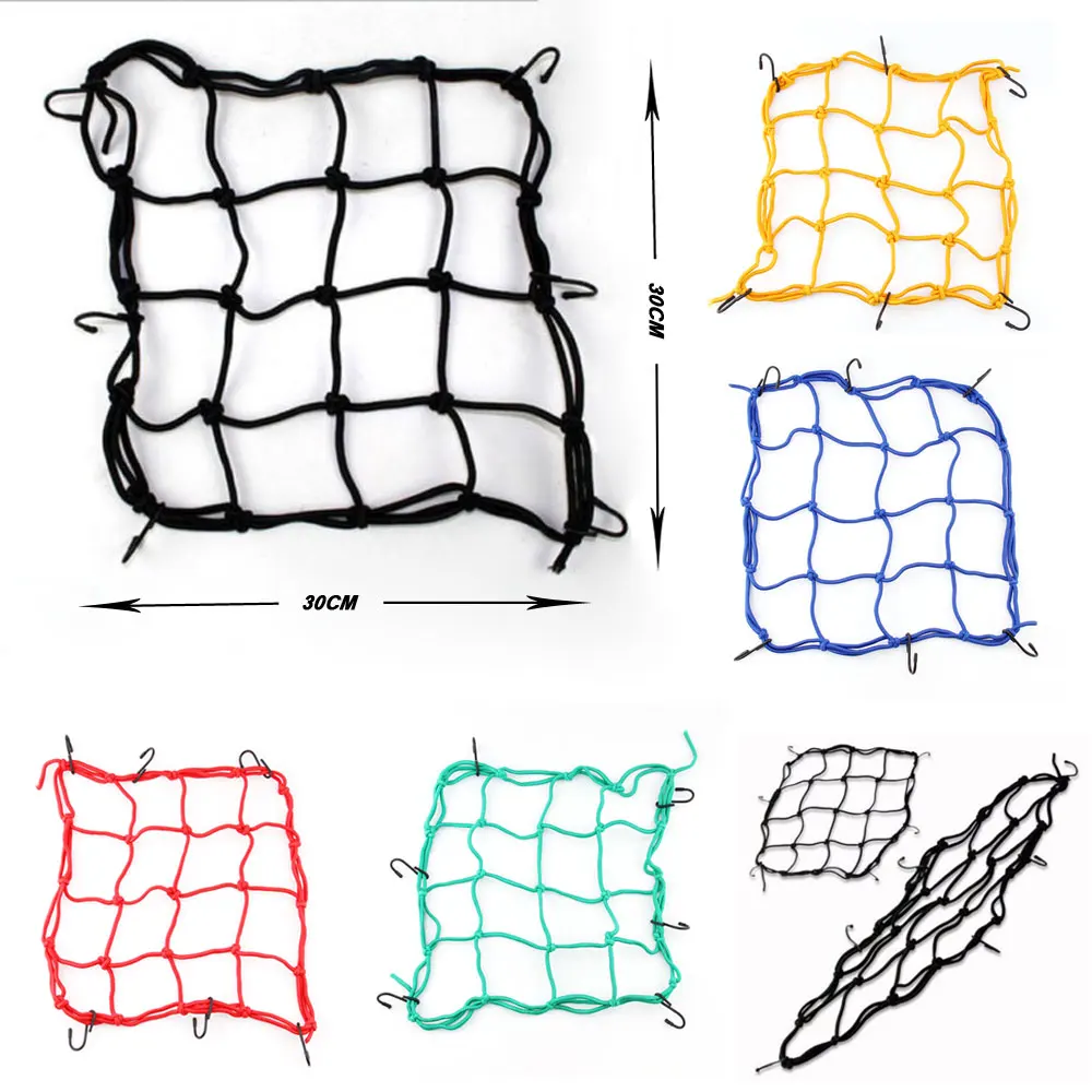 30*30cm Heavy-Duty Elastic Bungee Luggage Cargo Net Mesh Holder 6 Adjustable Hooks for Motorcycle Tank Helmet ATV Bike