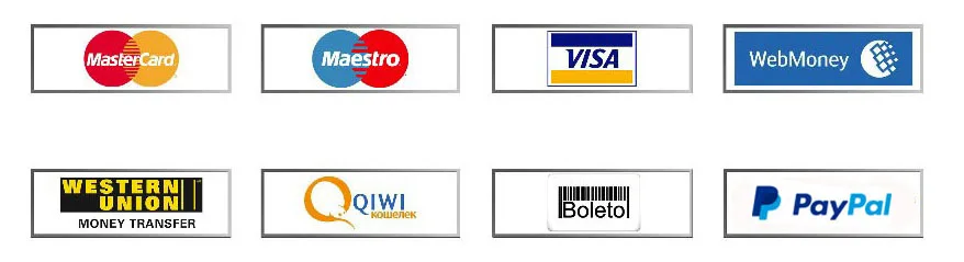 1.We accept Paypal,Alipay, West Union, TT. All major credit cards are accepted through secure payment processor ESCROW.
